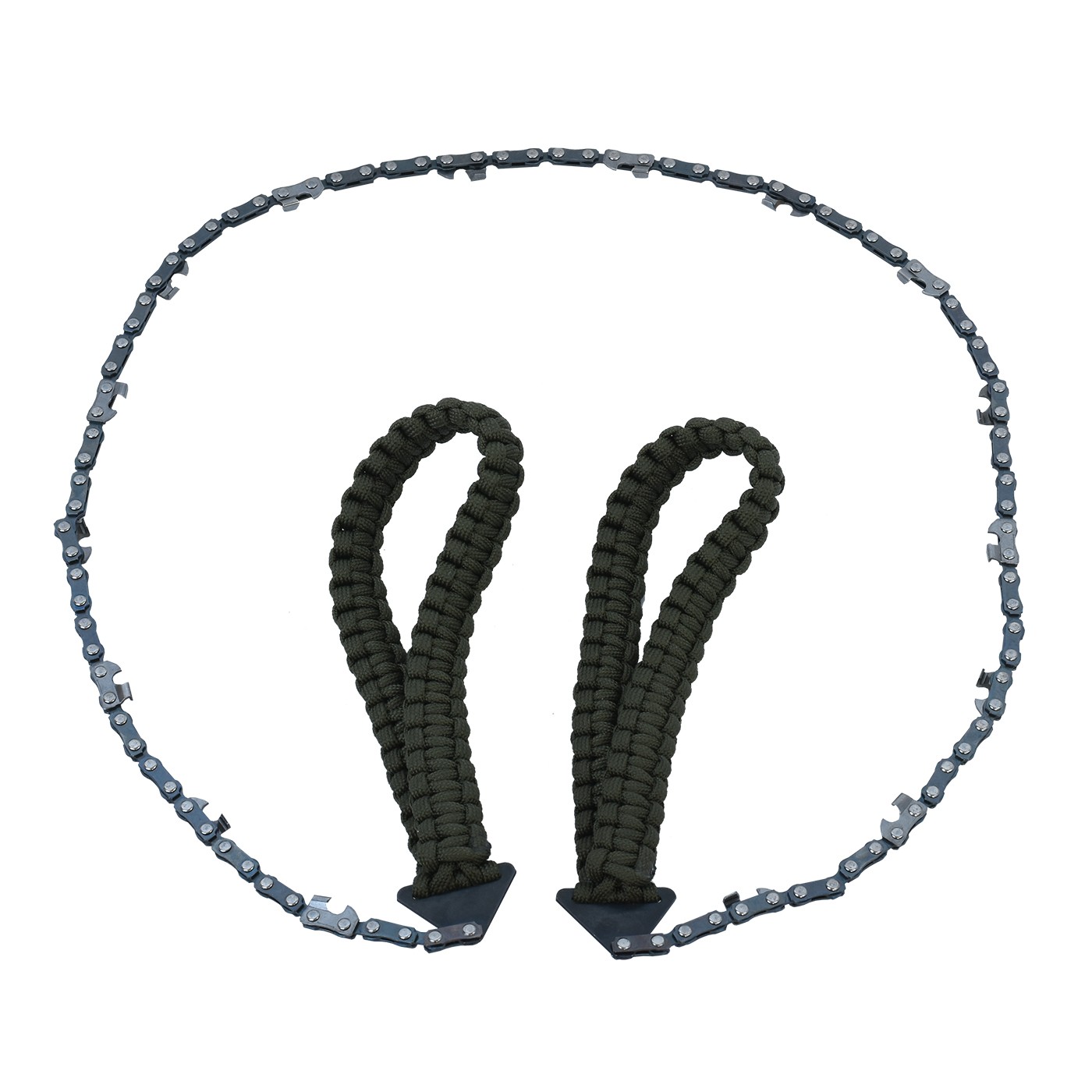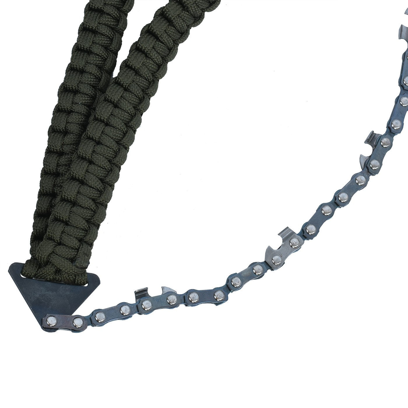 Die Handsäge SAW aus wärmebehandeltem Hartstahl hat gegenläufige Zähne, damit du in beide Richtungen problemlos schneiden kannst, und sie wiegt nur 180 g. Als Material für den Griff haben wir eine gestrickte Paracord oder Fallschirmschnur mit einem Durchmesser von 3 mm gewählt. Dieser Handgriff versorgt dich im Notfall mit einer drei Meter langen Schnur.