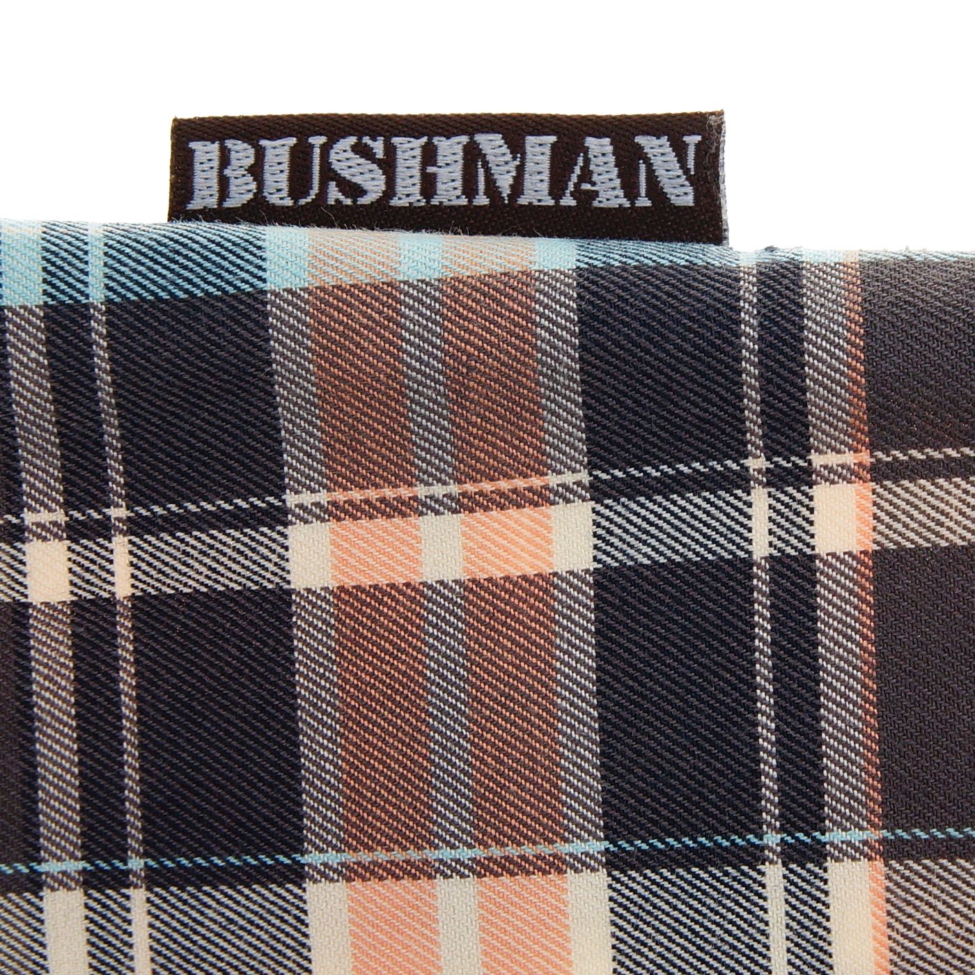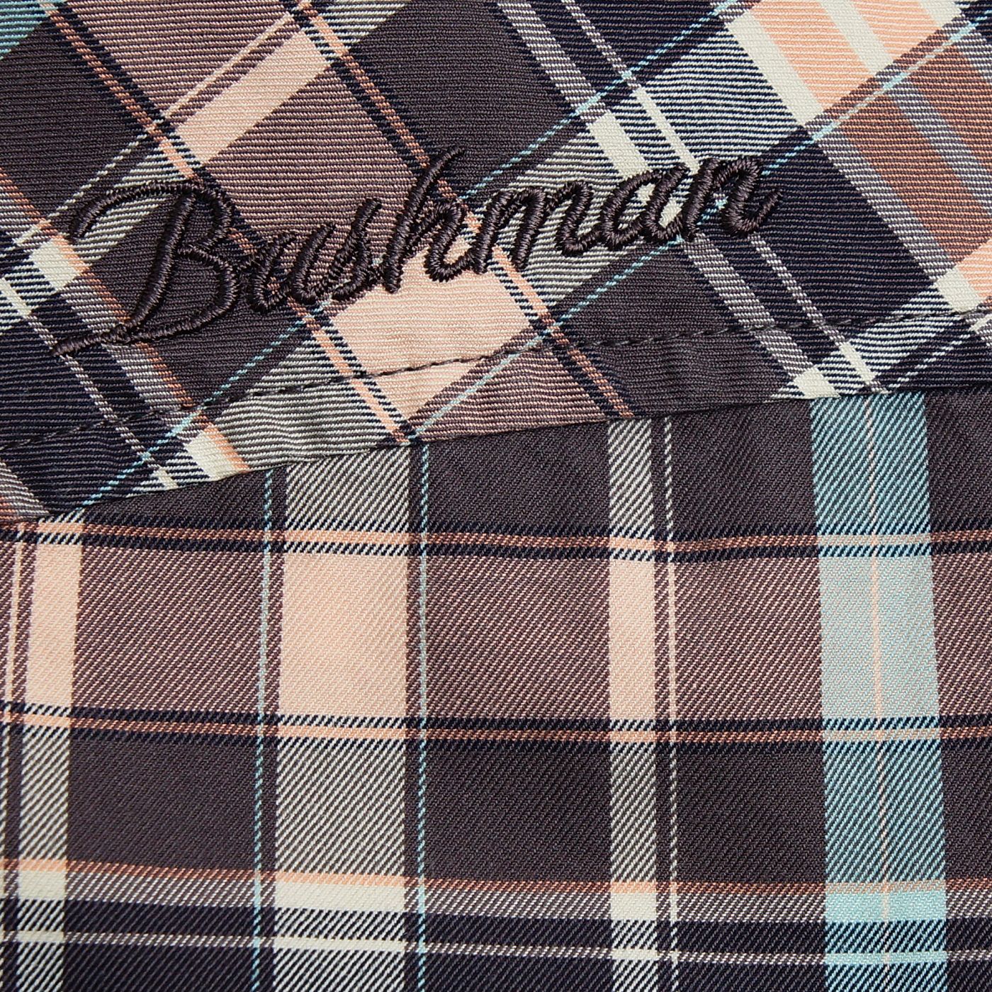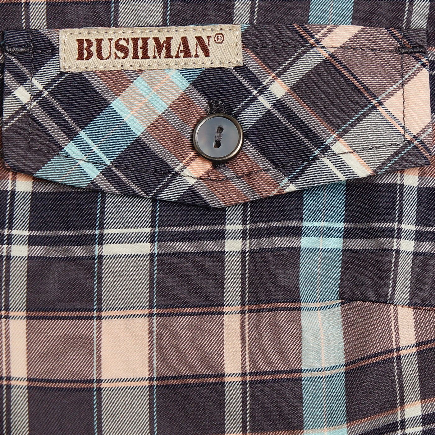 Zu den Design-Elementen gehören das BUSHMAN-Flaglabel in der Seitennaht sowie ein Aufnäher mit dem BUSHMAN-Loge auf der linken Brusttasche. Die Kontrast-Manschetten mit Aufdruck beim Hochkrempeln der Ärmel sind ein Blickfang.