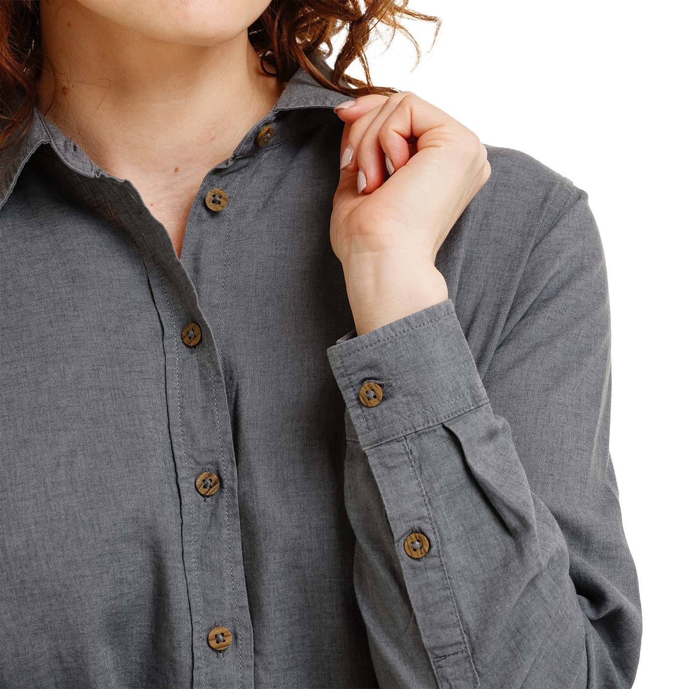 Das Hemd FATIMA besteht aus einem Leinen-Viskose-Gemisch, das die natürliche Atmungsaktivität von Leinen mit der Weichheit und dem fließenden Fall von Viskose vereint. Das Material ist leicht, luftig und angenehm auf der Haut – ideal für wärmere Tage. Das Hemd ist mit einem durchgehenden Reißverschluss, einem abgerundeten Saum und kleinen Seitenschlitzen für optimale Bewegungsfreiheit ausgestattet. Designerknöpfe und eine dezente Markenstickerei unten links runden den cleanen Look à la BUSHMAN ab. Farblich eher graublau.