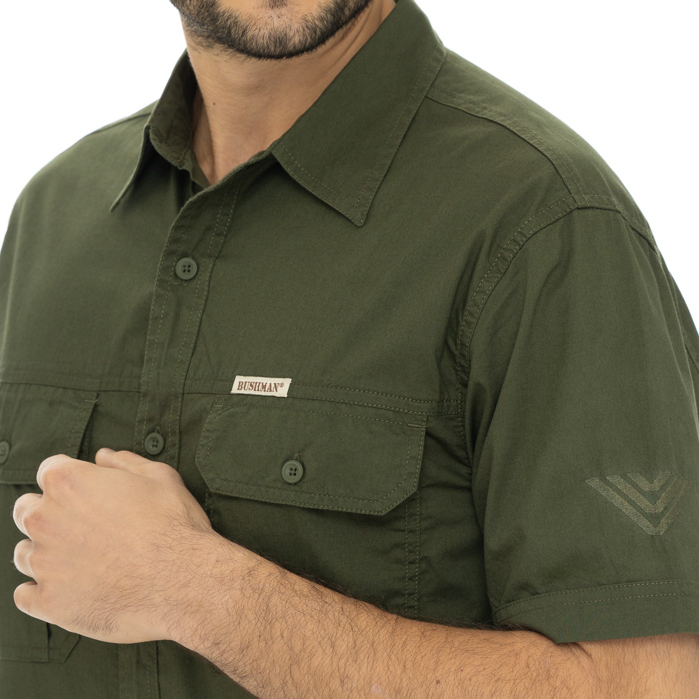 Das Leben ist eine lange Expedition und das BUSHMAN-Hemd PRETORIA wird sich auf jeden Fall als nützlich erweisen. Es ist leicht, bequem und hat eine besondere enzymatische Vorwäsche erhalten, um seine Weichheit zu verbessern und ein frisches charakteristisches Aussehen zu gewinnen. Die Nähte mit zwei Stichreihen tragen zur Langlebigkeit des Hemdes bei. Mit freien Falten auf dem Rücken zieht das Shirt nicht über dem Rücken, auch wenn du dich bewegst. Praktisch sind zwei Taschen auf der Vorderseite mit Knopfverschlüssen, in denen du das Nötigste verstauen kannst. Dezente Stickereien auf dem Ärmel, Applikationen über der linken Tasche und ein Flaglabel in der Seitennaht mit dem BUSHMAN-Logo, ein geformter Saum und eine praktische Schlaufe auf dem Rücken lassen keinen Zweifel daran, dass du dich für Tradition, Qualität und einen unverwechselbaren Stil entscheidest.