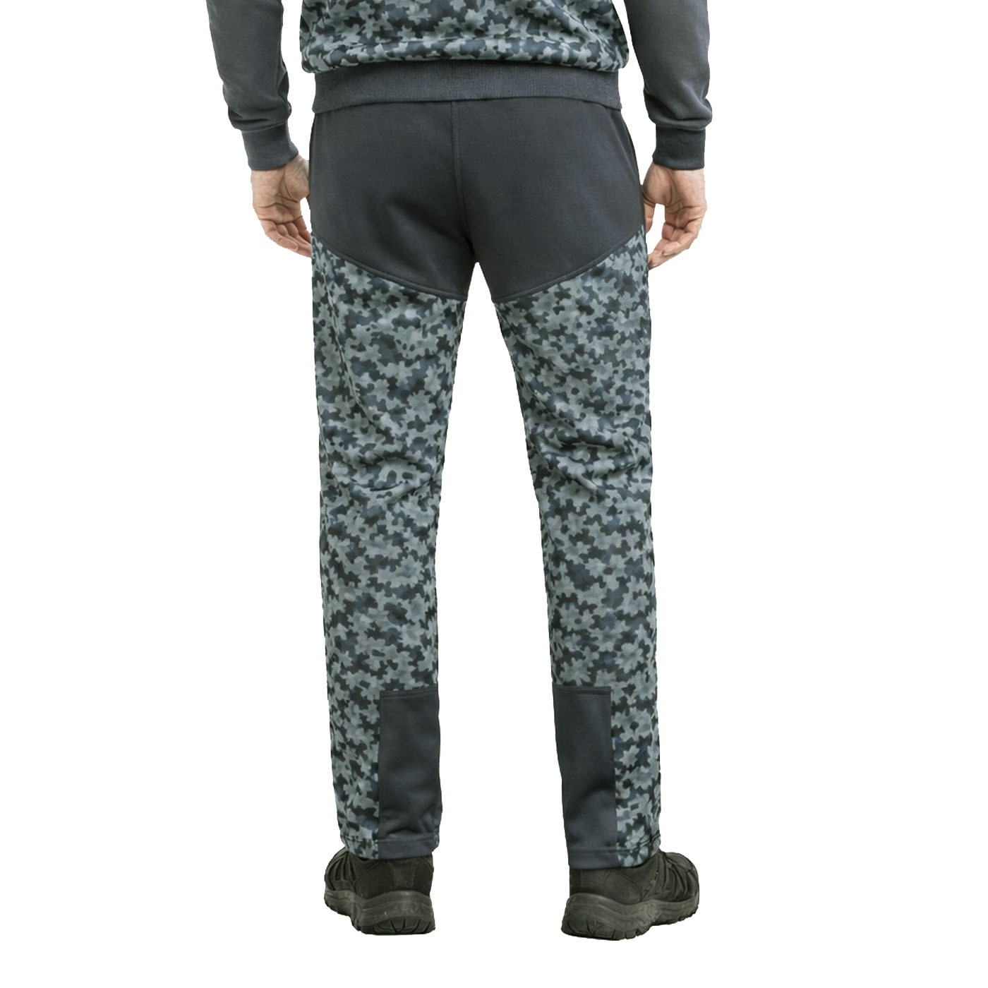 Herren-Jogginghose aus der VÁGNER Kollektion aus warmem und strapazierfähigem Polyesterfleece für anspruchsvolle Bedingungen. Praktische Eingrifftaschen, elastischer Bund mit Kordelzug, elastische Beinabschlüsse. Das moderne Camouflage-Muster wird durch einen originellen Print an der Vorderseite des Beins ergänzt.