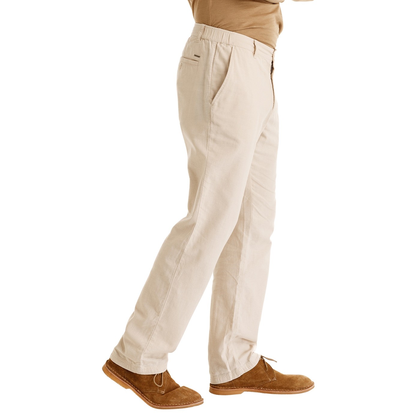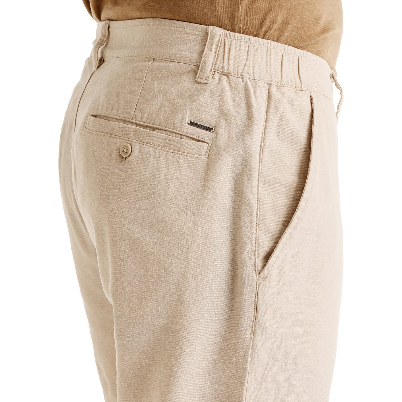 Die Hose ENITAN ist wie geschaffen für wärmere Tage und einen entspannten urbanen Lebensstil. Der Baumwoll-Leinen-Mix ist atmungsaktiv, wirkt leicht und frisch und macht die Hose ideal für den ganzen Tag. Ein lockerer Bund mit Gummizug (auch seitlich verstellbar) erhöht den Tragekomfort und verleiht der Hose einen lässigen, aber dennoch urbanen Look. Der klare Schnitt wird durch feine Details ergänzt – eine dezente Stickerei auf der Vordertasche, ein Metalllabel hinten und der klassische Knopfverschluss der Gesäßtaschen. ENITAN-Hosen beeindrucken nicht durch ein auffälliges Design, sondern durch ehrliche Materialien, schlichte Eleganz und einen ausgewogenen Stil.