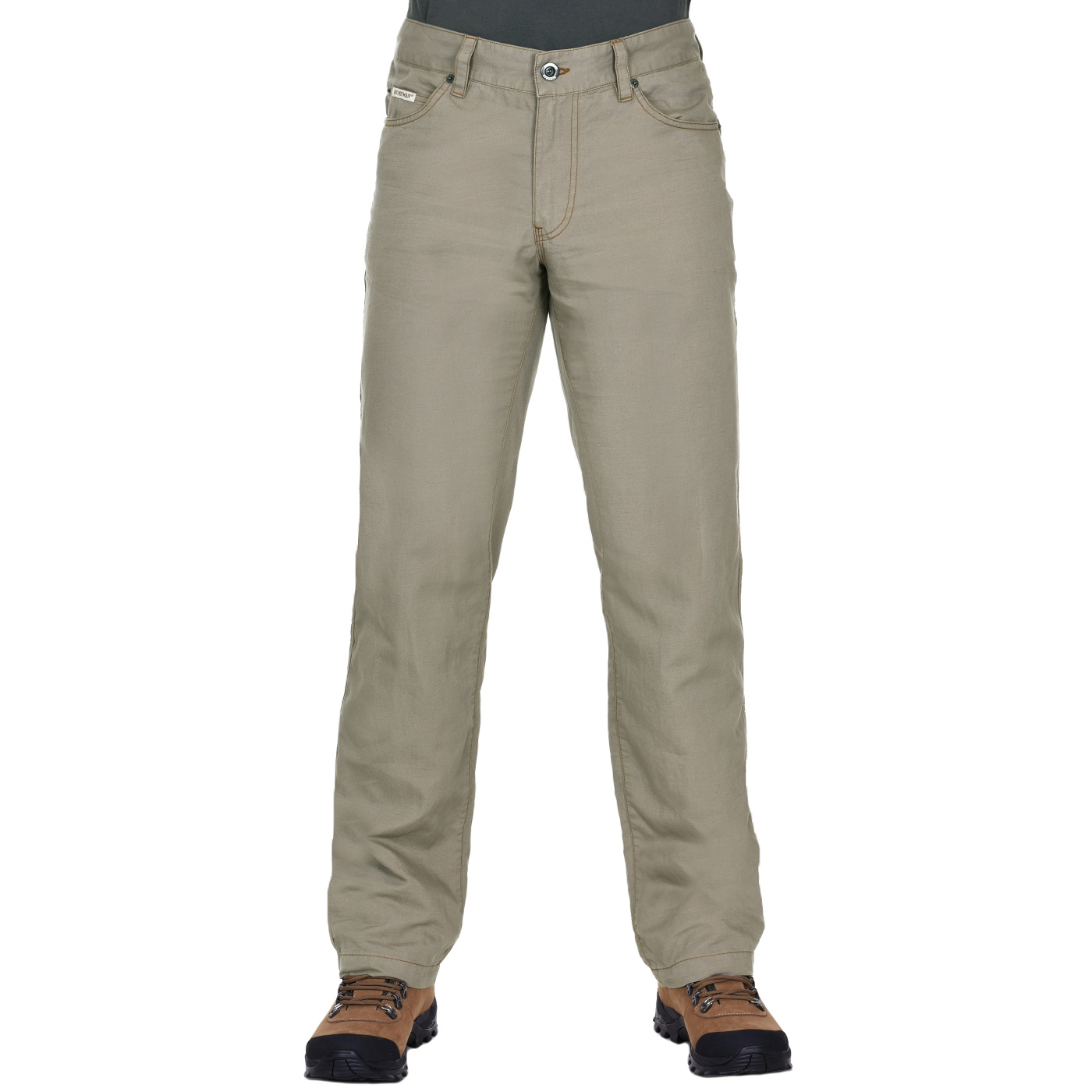 Sie können in der Hose joggen, sowie in den Bergen wandern, jedoch am besten dient sie Ihnen in der Stadt. Die leichte BUSHMAN WARREN-Jeans besteht aus einer Mischung aus Baumwolle und Leinen, um der Hose einen einzigartigen Look zu verleihen. Atmungsaktives Material ist ideal für heiße Frühlings- und Sommertage, wenn sie Ihnen Komfort den ganzen Tag anbietet. Vordertaschen sind mit Metallnieten befestigt, der Rücken mit Ziernähten in Form unserem legendären "V-Logo". Die Rückseite der Hose ist außerdem mit einem Lederetikett mit dem BUSHMAN-Logo und Sternen vom Südkreuz verziert. Wichtige Parien sind dann mit einem zuverlässigen YKK-Reißverschluss beschützt.