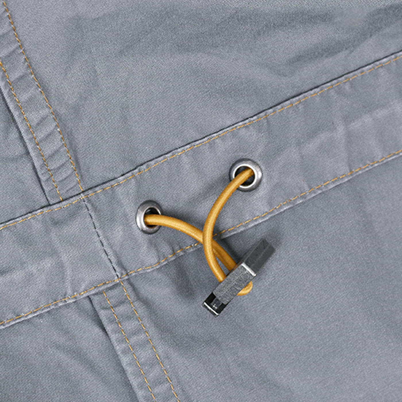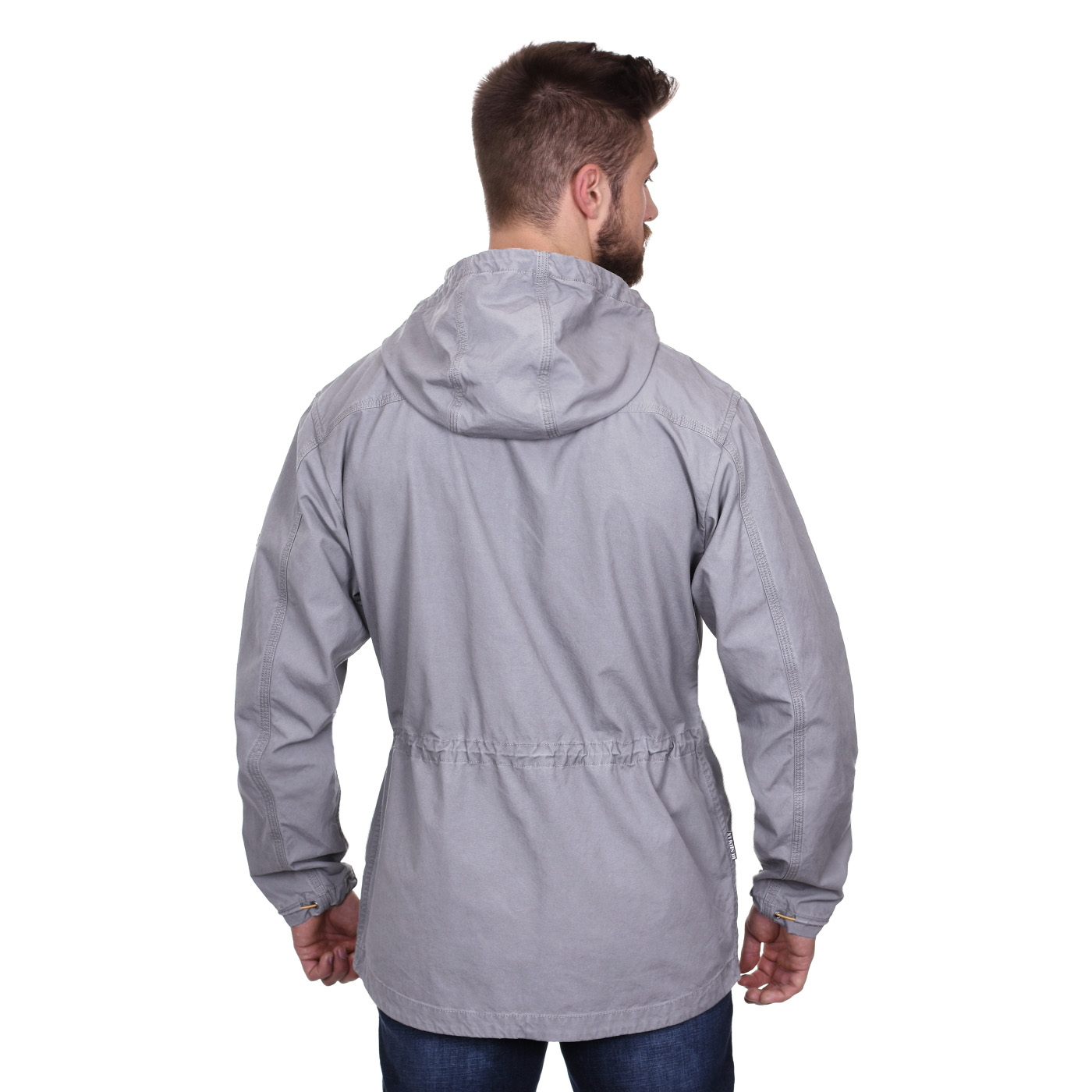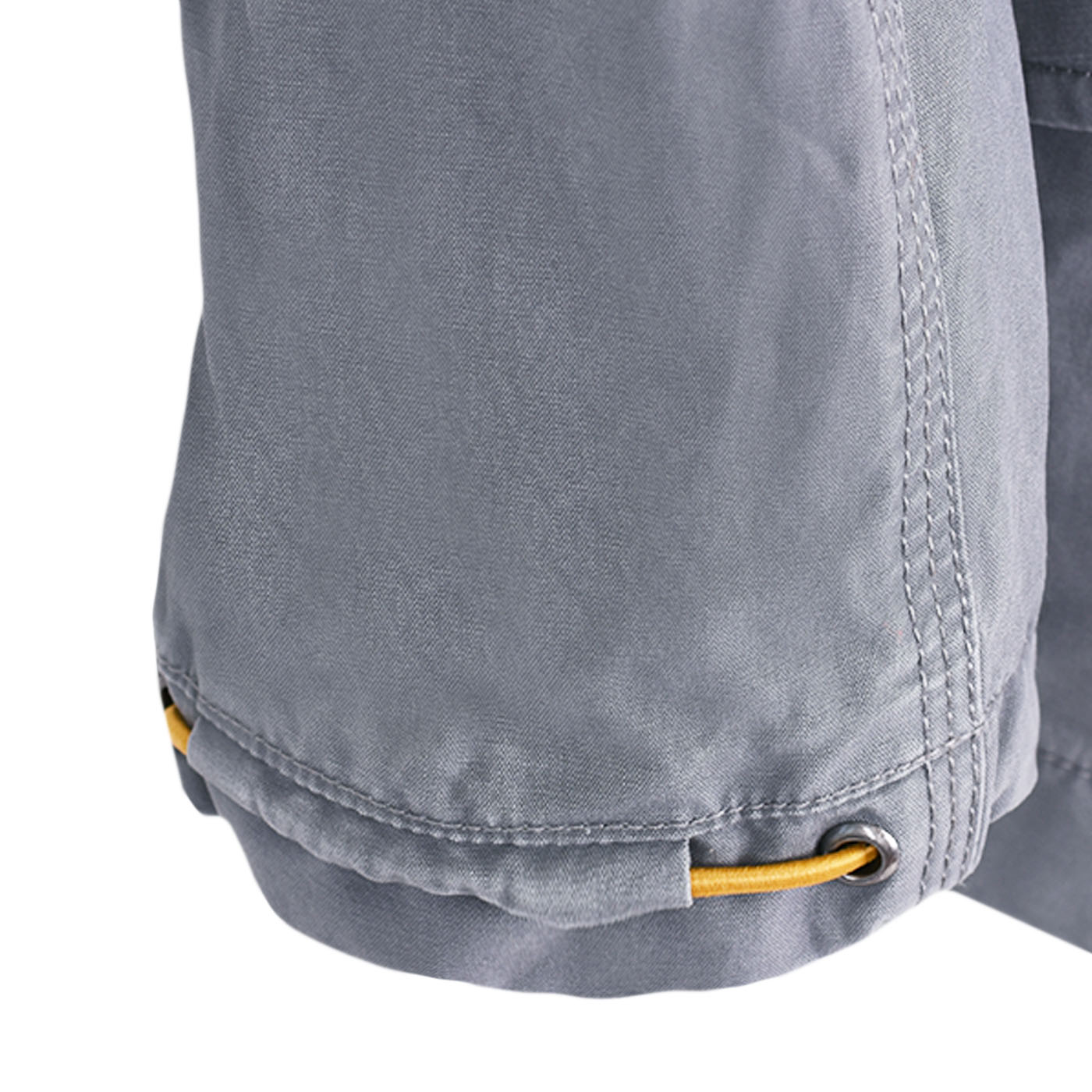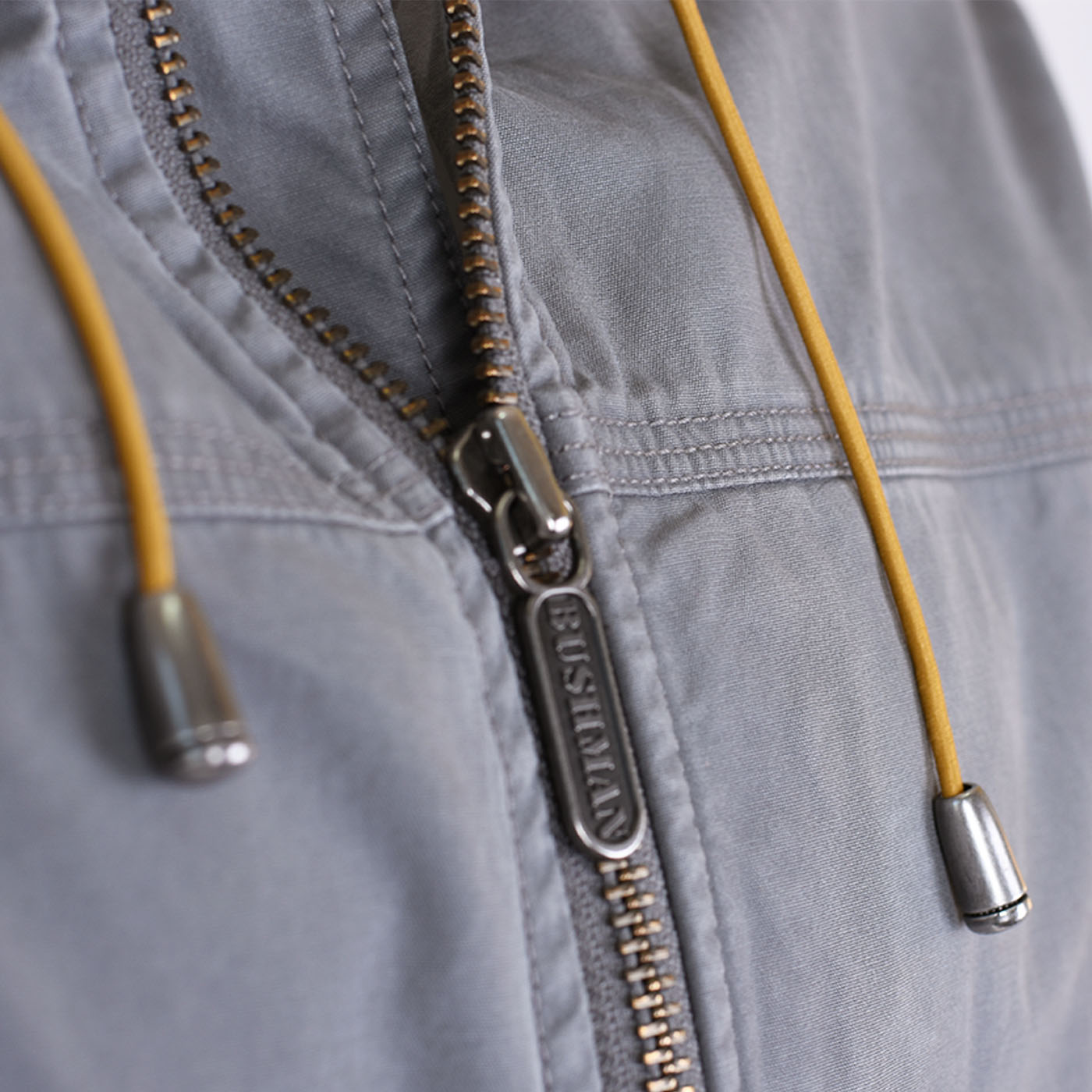 BRAGG besitzt eine praktische Kapuze, zwei Pattentaschen mit Druckknopfverschluss und eine Innentasche mit Reißverschluss. Zum Verschließen der Jacke dient ein hochwertiger YKK-Reißverschluss. Am linken Ärmel ist eine Flagge als Zierapplikation und am Vorderteil das Logo „Bushman Expedition Outfitters”. Augenfällig ist das Webband in gelbem Farbkontrast, das zum Zuziehen der Kapuze und der Ärmelbündchen dient. Die spezielle enzymatische Vorwäsche verleiht der Jacke mehr Weichheit und Komfort, was du besonders bei deiner ganztägigen Entdeckungsreise schätzen wirst.