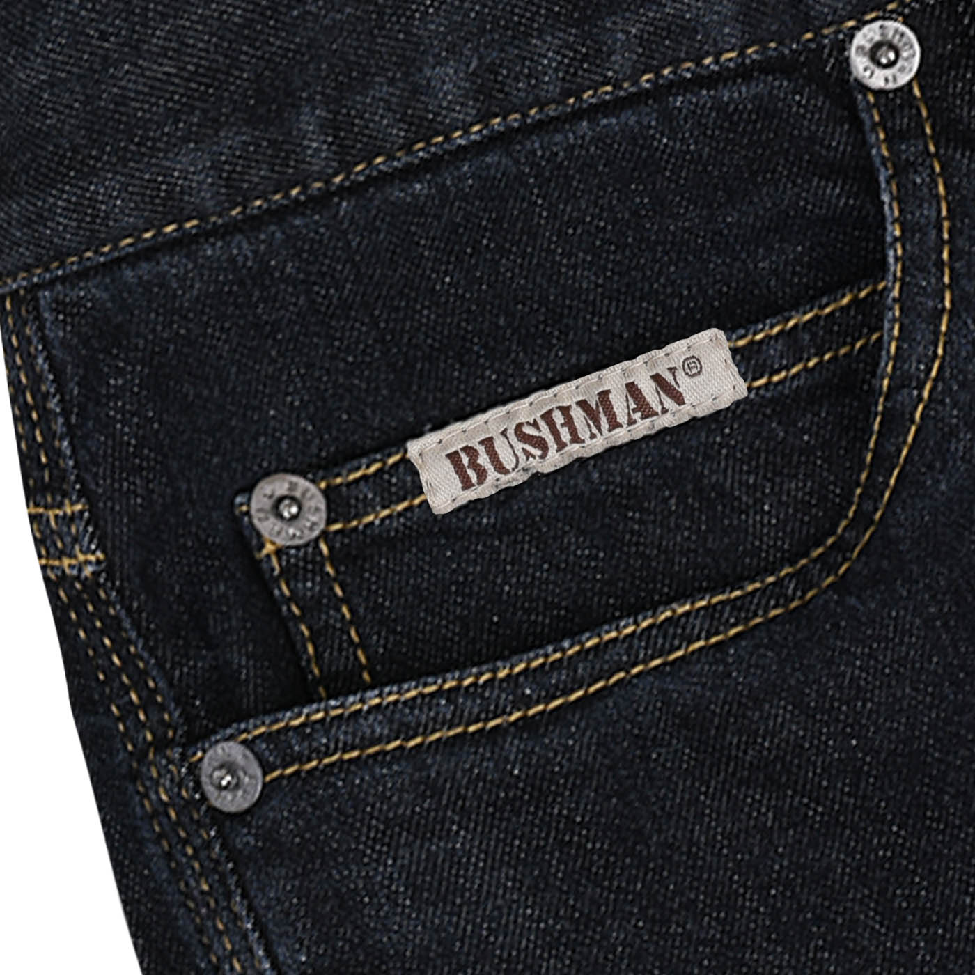 Die Herren Freizeit Jeans Hose MARPH von BUSHMAN ist aus schwerem Denim-Stoff gefertigt. Der Denim-Stoff besteht aus 99% Baumwolle und ist mit 1% Elastan vermischt, so dass die Hose sich gut anpasst und sehr bequem zu tragen ist. Die Jeans ist sehr hochwertig verarbeitet. Alle viel belasteten Stellen sind mit einer 3-fach Naht ausgestattet. Der Reißverschluss ist von YKK und garantiert eine Langlebigkeit. Die Herren Jeans ist klassisch geschnitten und verfügt über 2 Fronttaschen und 2 Gesäßtaschen. An der rechten Fronttasche ist eine Münztasche integriert. Auf der Münztasche und der linken Gesäßtasche befindet sich ein kleines BUSHMAN-Logo. Ein dekorativer BUHSMAN-Druck ist auf dem Lederetikett auf dem Bund der Rückseite angebracht. Eine spezielle enzymatische Vorwäsche garantiert Ihnen die Formstabilität.