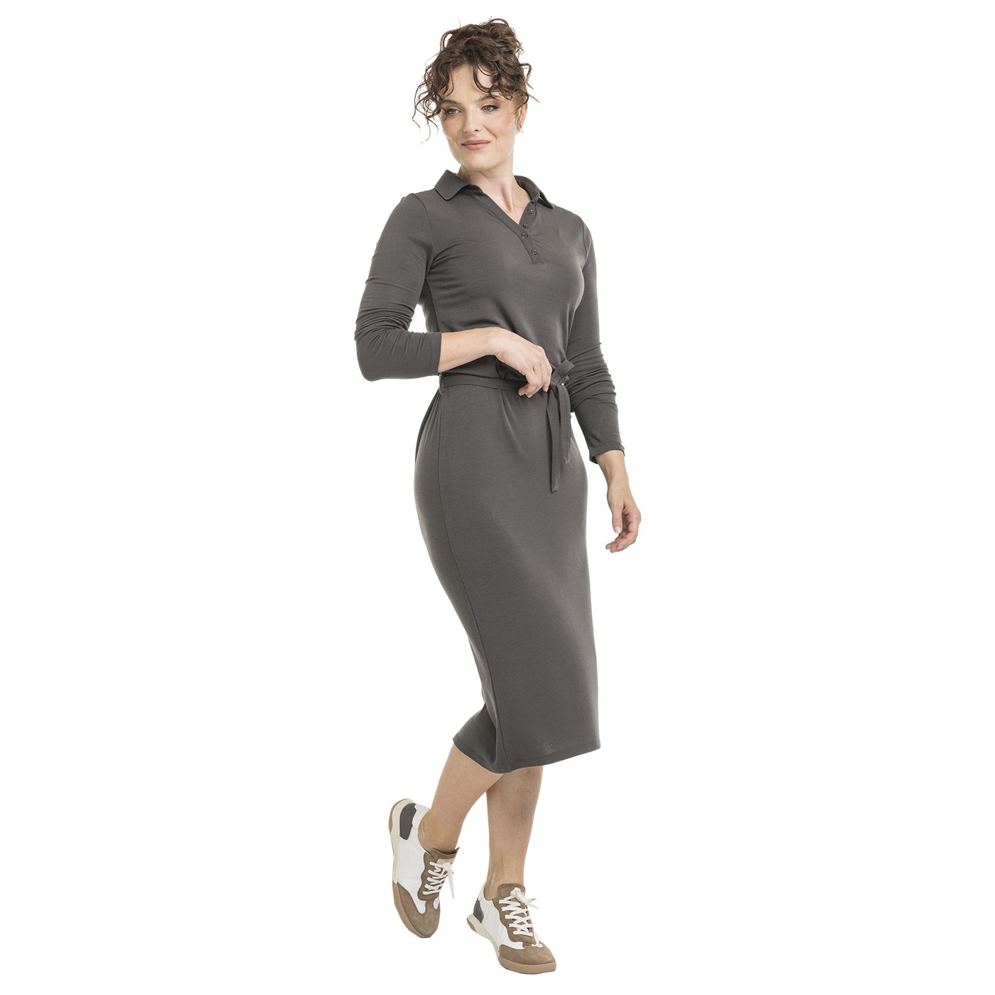 Ein Kleid, das deine Silhouette perfekt in Szene setzt. Der halboffene Rippenstrick (1x1) mit Kragen und Bindegürtel wirkt lässig-elegant – und dank der Kombination aus Lyocell (TENCEL™) (76 %), Wolle (19 %) und Elasthan (5 %) verliebst du dich auf Anhieb in das Kleid. Es ist flexibel, weich, angenehm warm und gleichzeitig leicht, sodass es auch bei ganztägigem Tragen nicht einengt. Dazu Sneakers oder Lederstiefel – und schon hasst du ein zuverlässiges Outfit für kältere Tage.