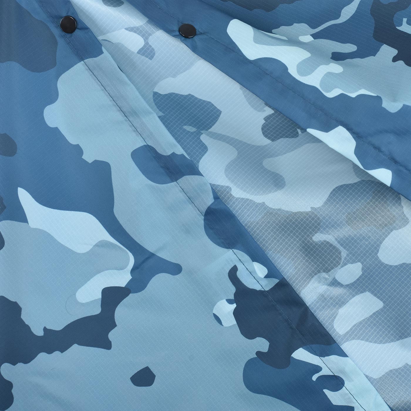 Nachdem die Druckknöpfe an den Seiten (die die Ärmel fixieren) geöffnet wurden, lässt sich der Poncho zu einer wasserdichten Plane von 220 × 145 cm ausbreiten (stabile Kupferösen an den Ecken ermöglichen eine einfache Befestigung). Im Handumdrehen verwandelt sich der Poncho in eine geräumige Plane oder einen provisorischen Unterstand zum Sitzen oder Schlafen.