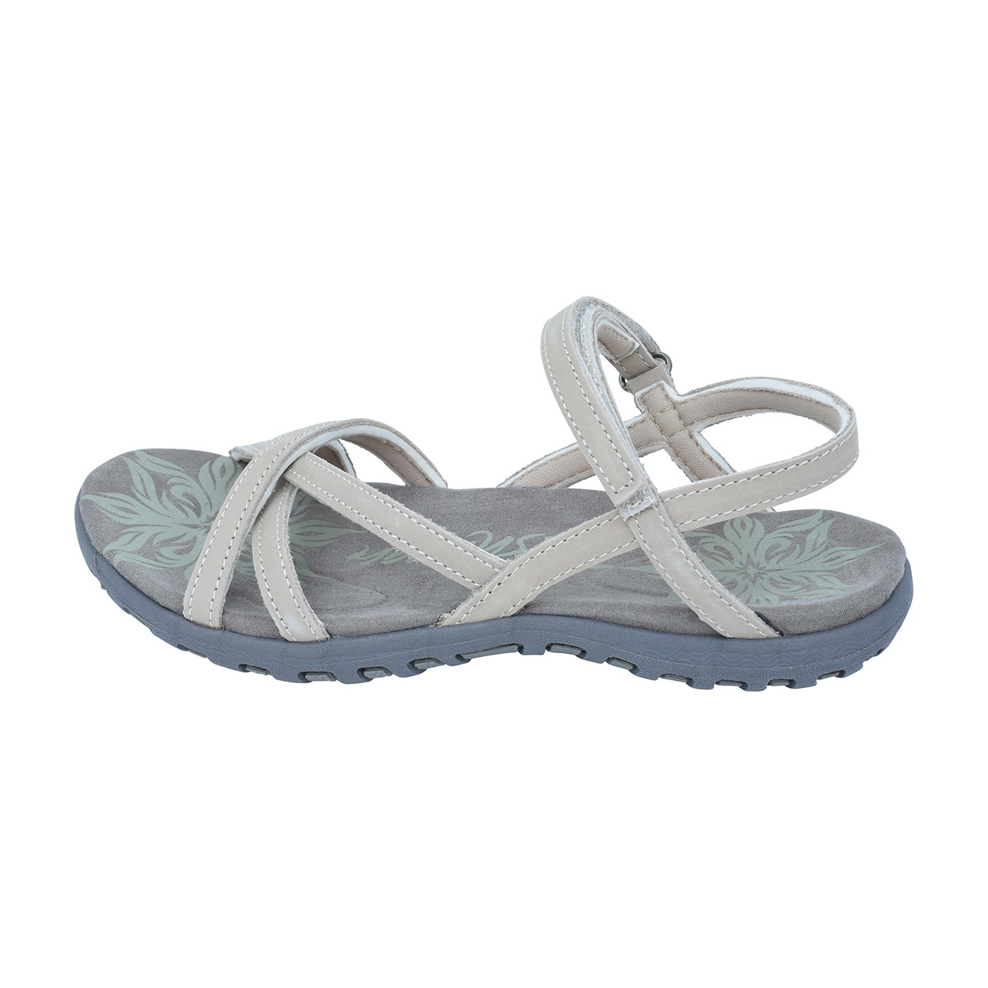 KIMBRA-Sandalen für Damen haben minimalistische Lederriemen, die bei jedem Schritt deine Füße streicheln. Die Einlegesohle aus Mikrofaser hat ein antibakterielles Finish und ist anatomisch geformt, sodass deine Füße auch nach einem Tag des Tragens nicht weh tun. Der weiche Schritt resultiert aus der Gummisohle mit einem von Farnblättern inspirierten Muster. KIMBRA sind stilvolle, leichte Sandalen, mit denen sich deine Füße beim Gehen auf Frühlingsblumen wohl fühlen. Und das nicht nur, weil wir Einlegesohlen mit einem Blumenmotiv und dem BUSHMAN-Logo bedruckt haben.