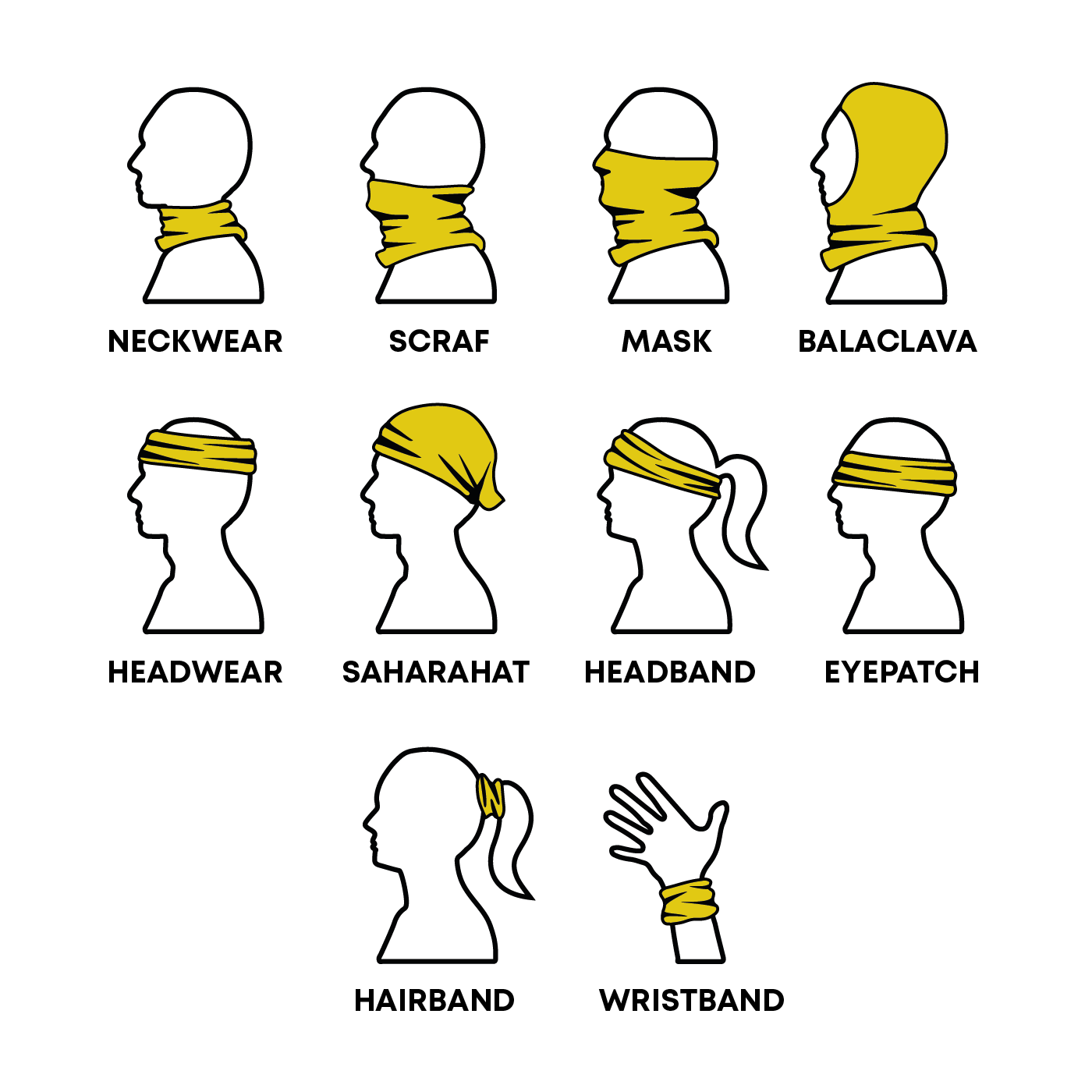 Egal wohin du gehst, der Multifunktionsschal BANDANA wird dir immer zuverlässig dienen. Egal ob du im Freien oder beim Sport unterwegs bist, BANDANA schützt dein Gesicht, deinen Hals oder deinen Kopf vor Wind, Kälte und Hitze sowie vor Insekten und Schmutz. Du ziehst ihn einfach entsprechend deinen aktuellen Bedürfnissen an (das Paket enthält Vorschläge für 10 Arten, wie er getragen werden kann).