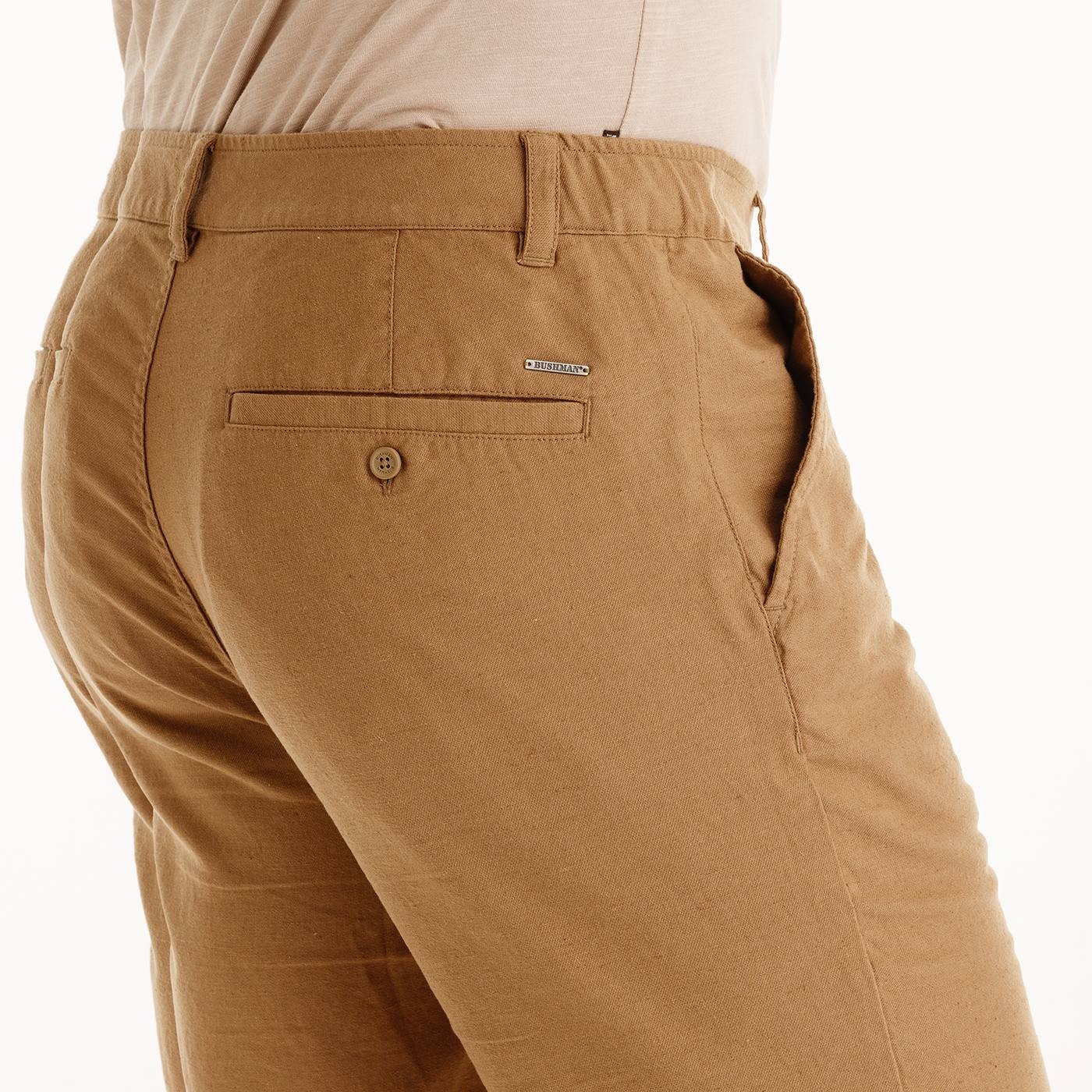 Die Shorts IMANI sind ideal für alle, die Wert auf Komfort und Leichtigkeit im urbanen Stil legen. Die Kombination aus Leinen und Baumwolle verleiht dem Material eine feine Struktur, die luftig und angenehm zu tragen ist – perfekt für warme Sommertage. Schlichte Linien und unauffällige Taschen sorgen für einen eleganten Look, während ein kleines Metalllabel und eine dezente Markenstickerei subtile BUSHMAN-Details setzen. Die Shorts eignen sich hervorragend für jeden Tag, wenn Komfort wichtig ist, ohne dabei auf Stil zu verzichten.