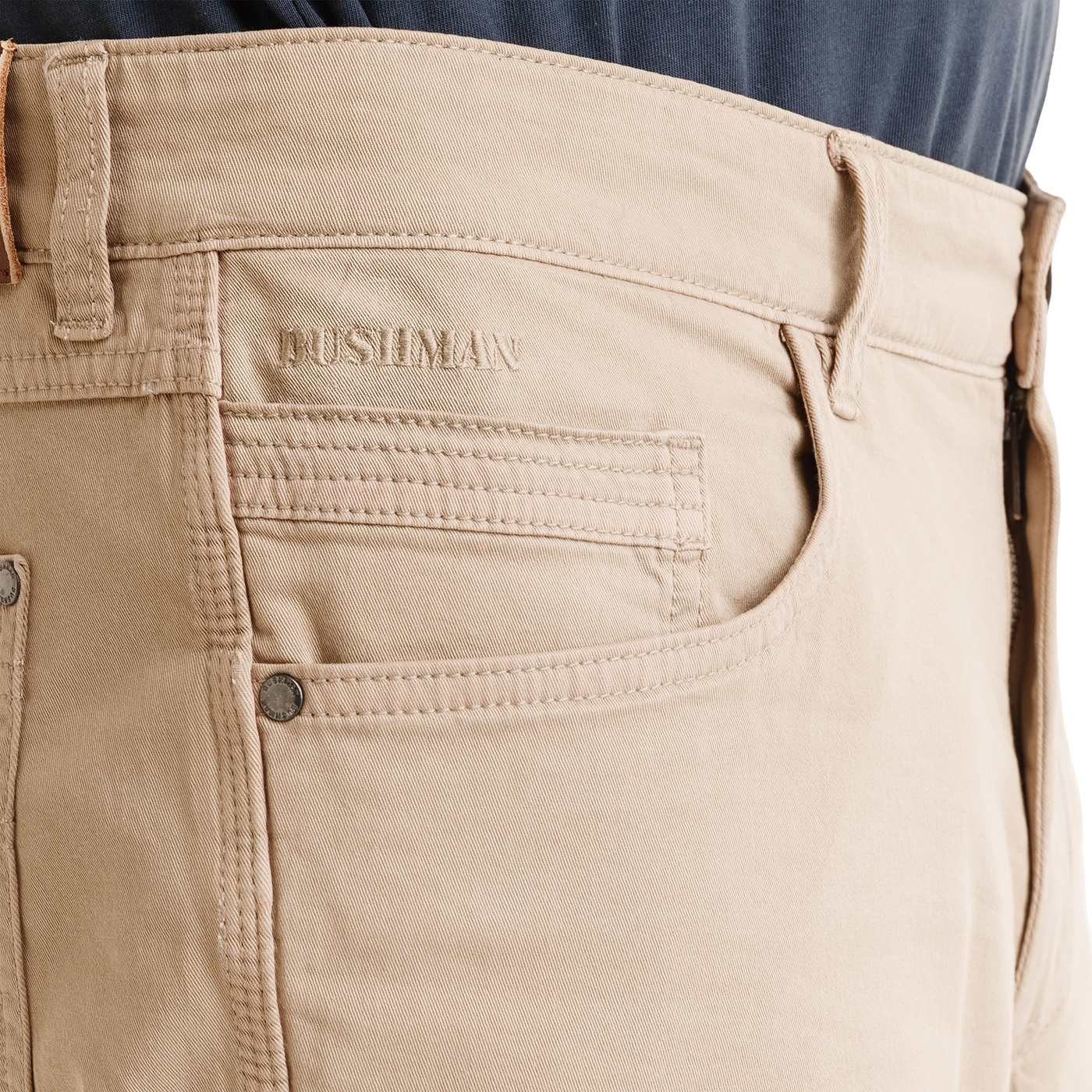 Die Shorts KOFY sind für die Stadt und den Alltag gemacht – perfekt, wenn du gepflegt aussehen und dich gleichzeitig wohlfühlen möchtest. Dank des speziellen Färbeverfahrens erhält das Material eine natürlich satte Farbe und eine angenehm weiche Oberfläche, die sich vom ersten Tragen an angenehm anfühlt. Die leichte Elastizität sorgt für optimale Bewegungsfreiheit und hohen Tragekomfort den ganzen Tag. Der transparente Denim-Schnitt, dezente Taschen und eine Münztasche ergeben einen ausgewogenen, eleganten Look, der sich vielseitig mit Hemd oder T-Shirt kombinieren lässt. Ein Lederlabel am hinteren Bund und Metalldetails unterstreichen den hohen Qualitätsanspruch und den zeitlosen BUSHMAN-Stil.