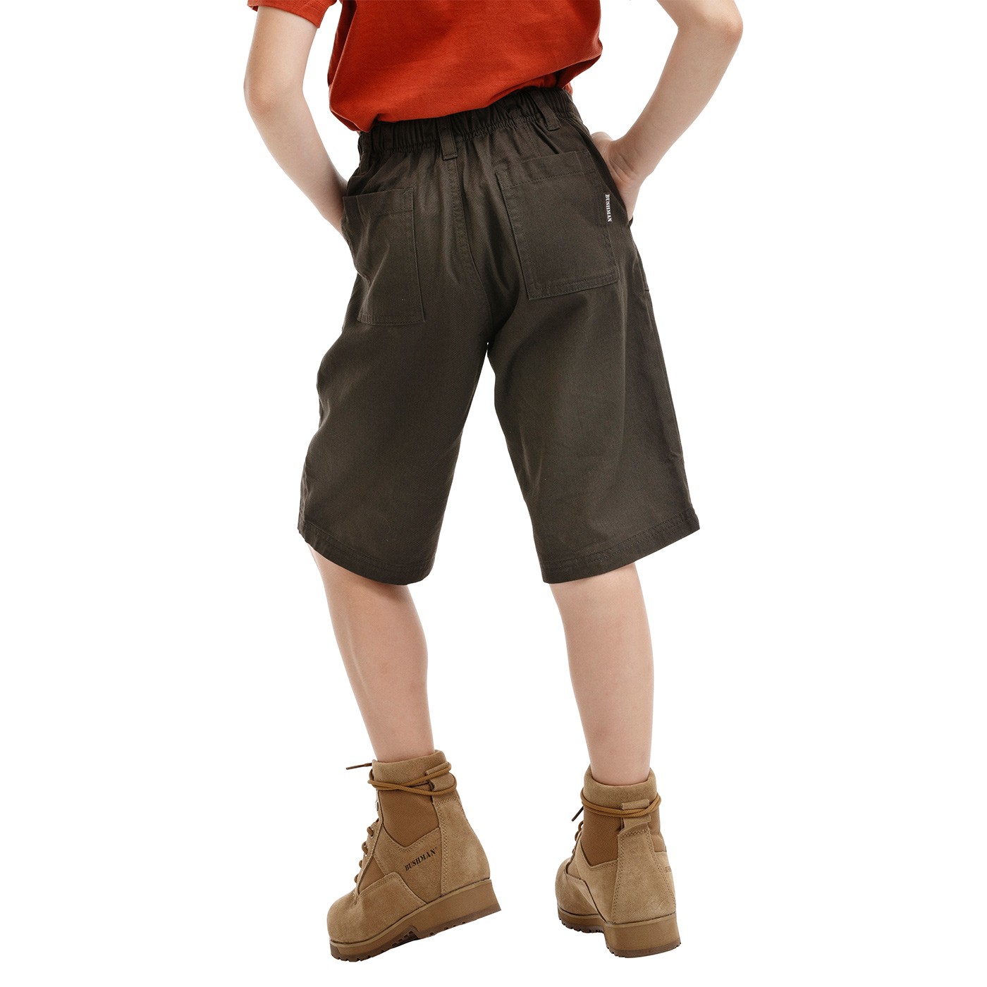 Diese Kinder-Shorts aus 100 % Baumwolle haben genau die richtige Taille, Taschen mit der richtigen Tiefe, Schlaufen, die gerade breit genug sind, und einen Gummizug an der Rückseite des Hosenbunds!