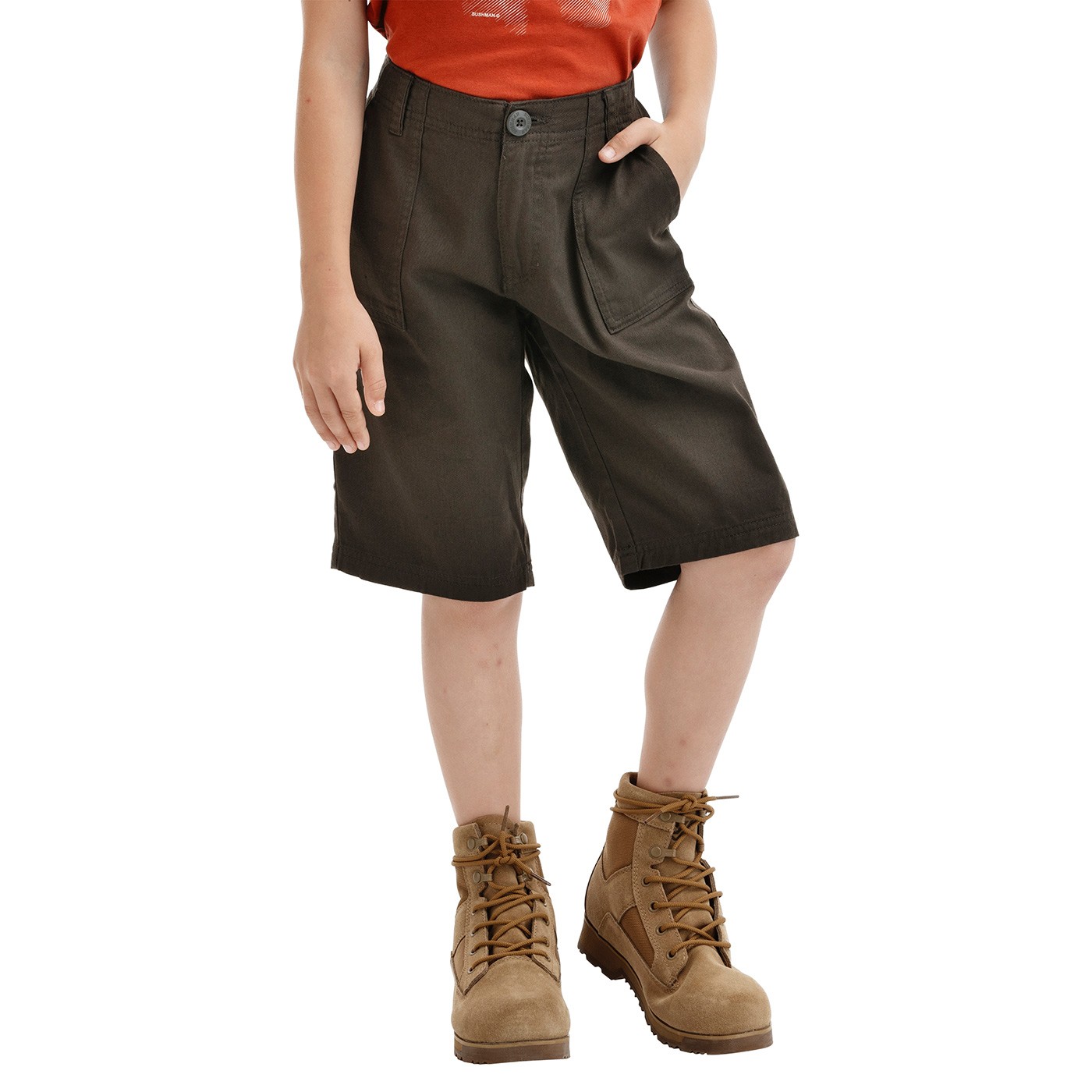 Einfach im Design, absolut einzigartig in der Ausführung. Unsere PERTH-Shorts für Kinder aus 100 % Baumwolle sind äußerst bequem und haben weite Beine, sodass kleine Abenteurer darin endlos die Welt erkunden können. Sie bieten Platz in zwei tieferen Seitentaschen und zwei Gesäßtaschen sowie großzügigen Gürtelschlaufen. Sie werden mit einem klassischen YKK-Reißverschluss und Knopf befestigt. Für zusätzlichen Komfort ist die Rückseite des Hosenbundes mit einem gerüschten elastischen Abschnitt ausgestattet.