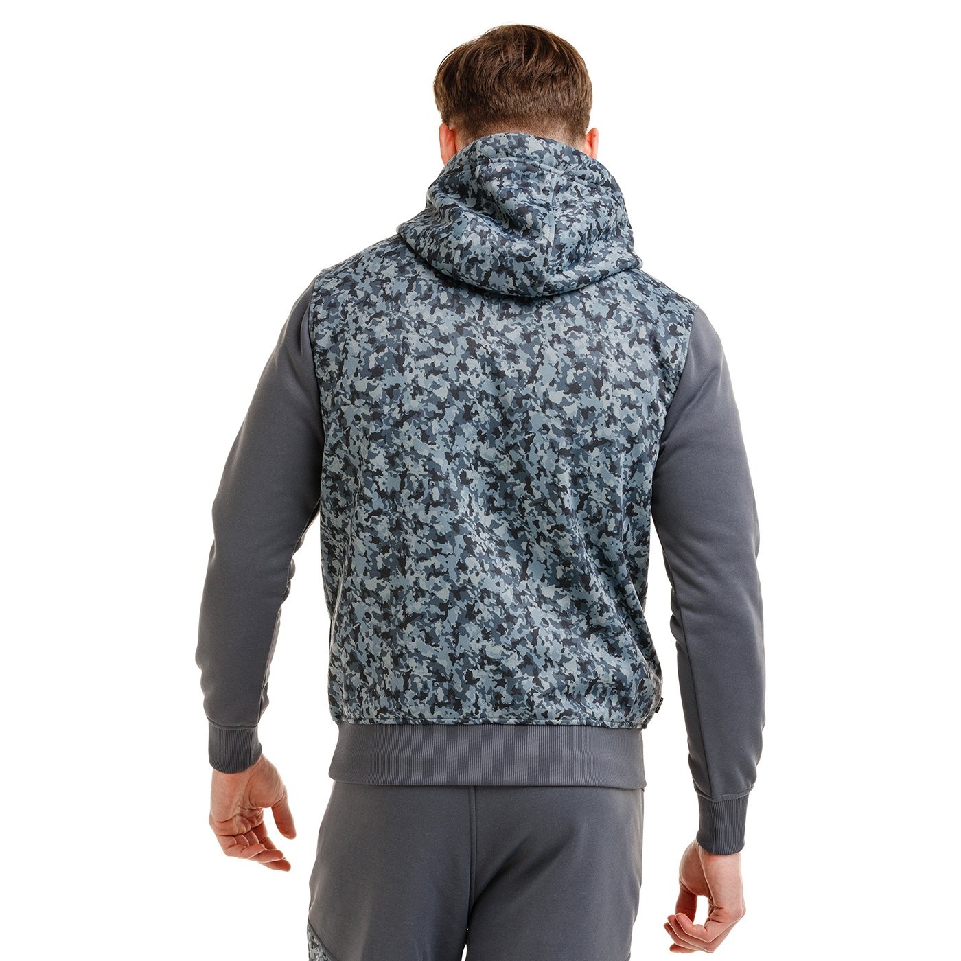 Ein robustes Herren-Sweatshirt aus warmem und strapazierfähigem Polyesterfleece aus der VÁGNER-Kollektion, speziell für anspruchsvolle Bedingungen. Die Kapuze mit Kordelzug bietet zusätzlichen Kälteschutz, die Kängurutasche praktischen Stauraum für Hände und Kleinigkeiten. Das Camouflage-Muster wird durch einen originellen Print an Ärmel und Vorderseite ergänzt, der den besonderen Charakter dieser Kollektion unterstreicht.