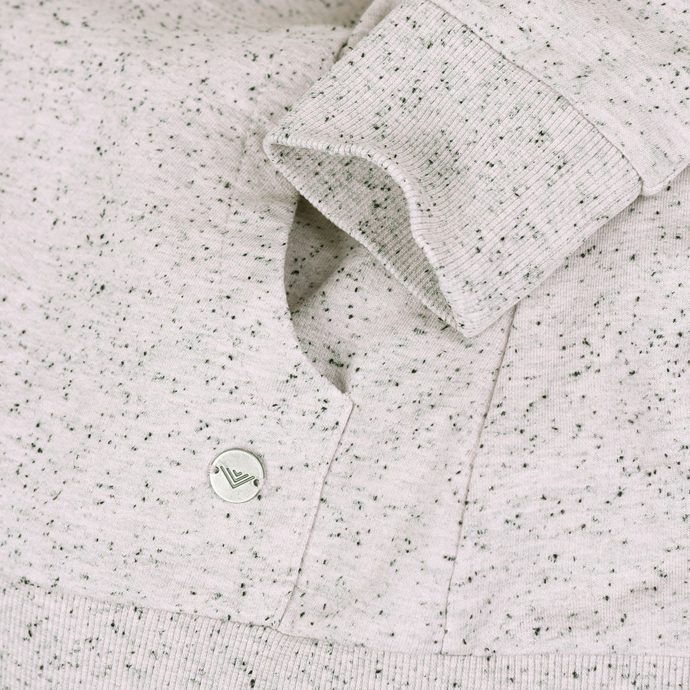 Die Kapuze ist mit weichem Uni-Webstoff gefüttert und durch beidseitige Kordel kann man sie noch nach Wunsch zuziehen, wenn Sie es noch wärmer mögen. Aus dem gleichen Grund sind die Ärmel und der untere Sweatshirt- Bund mit elastischen Bündchen versehen – für besseres Anliegen am Körper und als Schutz gegen unangenehme Kälte.