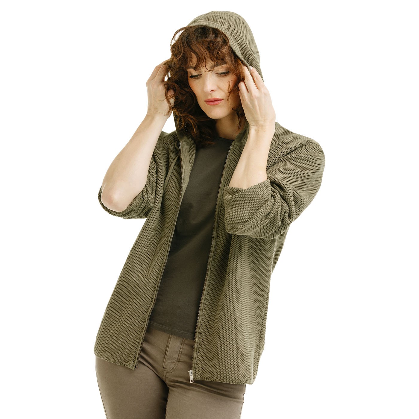 SHARI ist mehr als nur ein Pullover – dieser Hoodie vereint Komfort mit charakteristischem Stil. Die besondere Wabenstruktur verleiht dem Material Charakter und eine angenehme Form, die sich dem Körper perfekt anpasst, ohne zu beschweren. Die nachträgliche Färbung und die Acid-Wash-Effekte verleihen dem Pullover seinen authentischen Look. SHARI ist ideal für die Stadt und die Freizeit und passt perfekt zu Hosen, Jeans und Röcken. Ein universelles Kleidungsstück, das sich in jede Garderobe einfügt.
