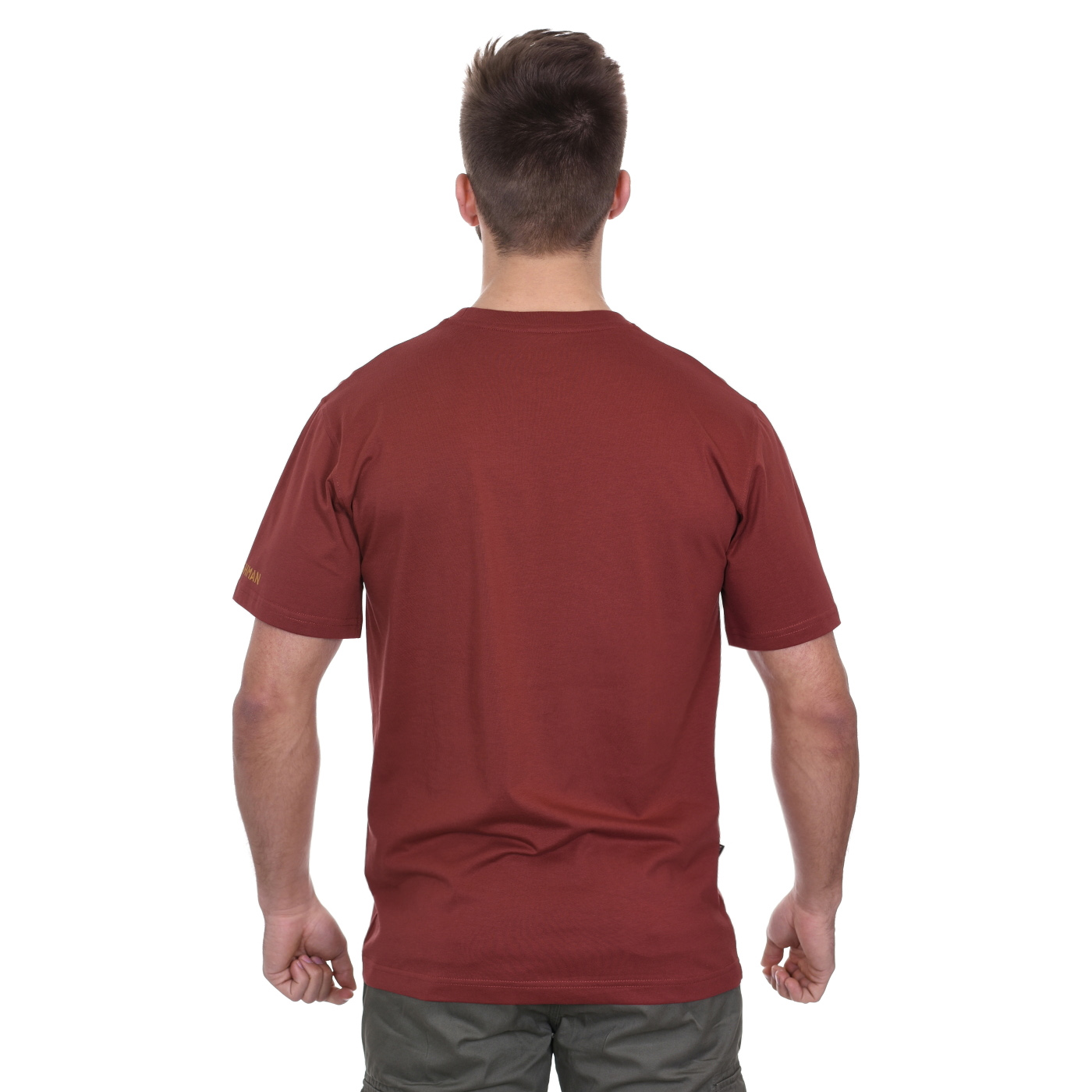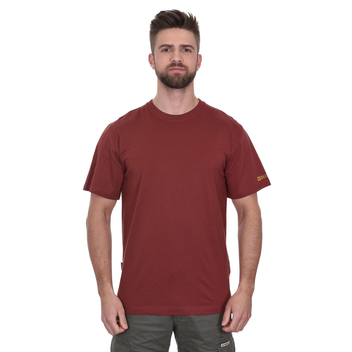 Modisches T-Shirt kurzarm, Reine Baumwolle (180g/m2), Rundhalsausschnitt, Klassischer Schnitt, Gerader Saum, BUSHMAN-Logo am Ärmel, Flaglabel in der Seitennaht