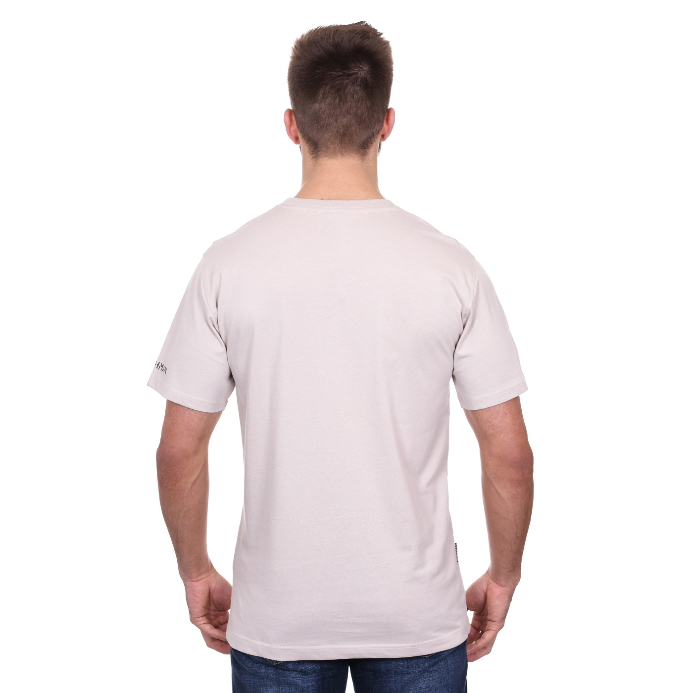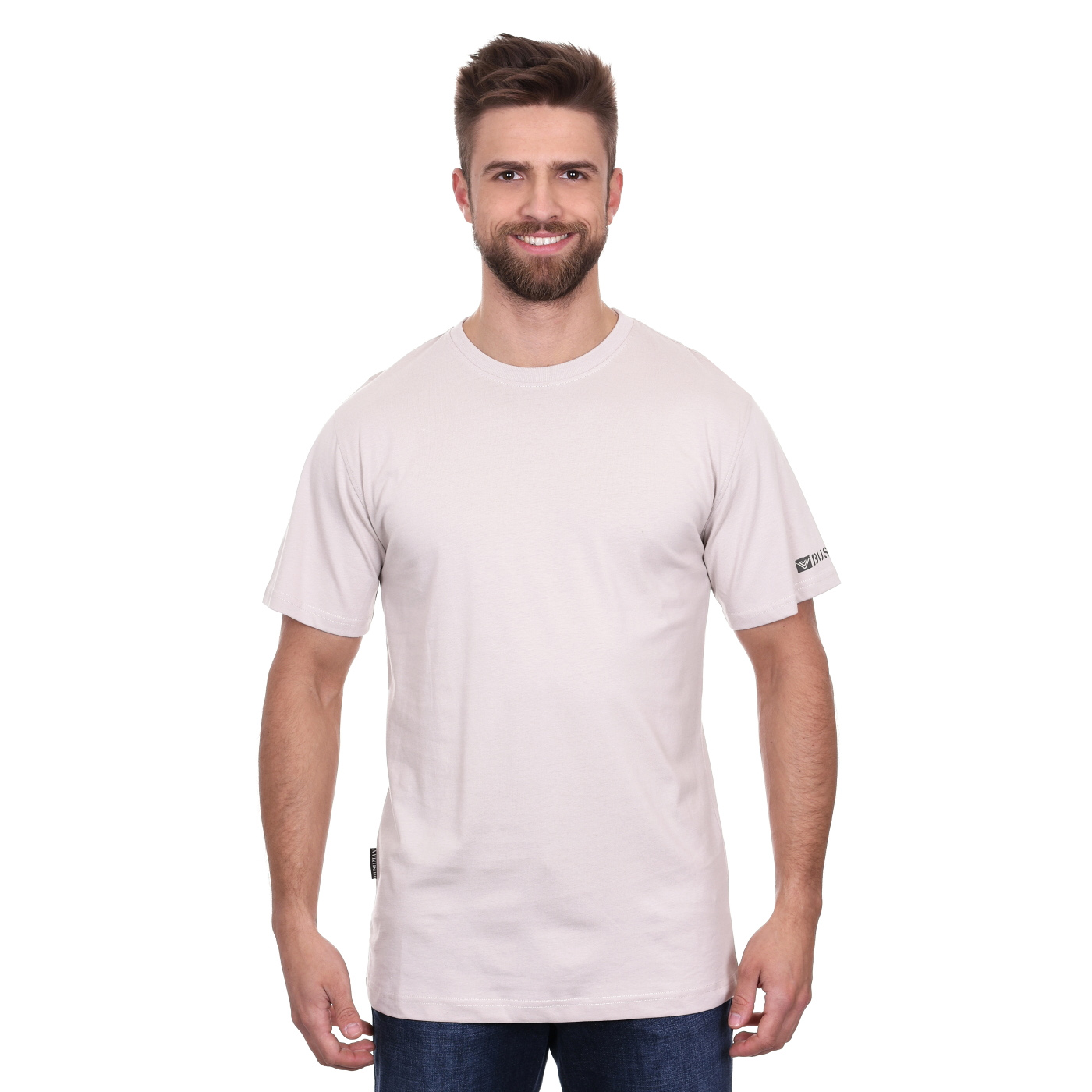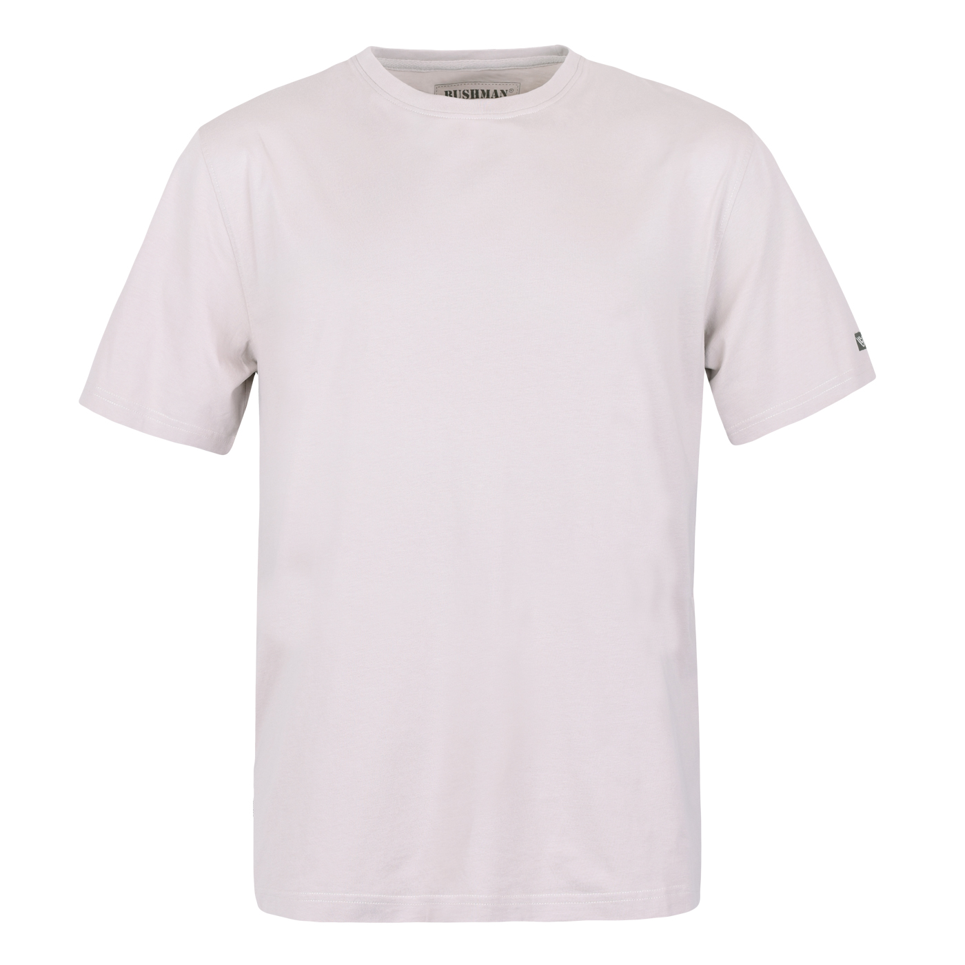 Modisches T-Shirt kurzarm, Reine Baumwolle (180g/m2), Rundhalsausschnitt, Klassischer Schnitt, Gerader Saum, BUSHMAN-Logo am Ärmel, Flaglabel in der Seitennaht