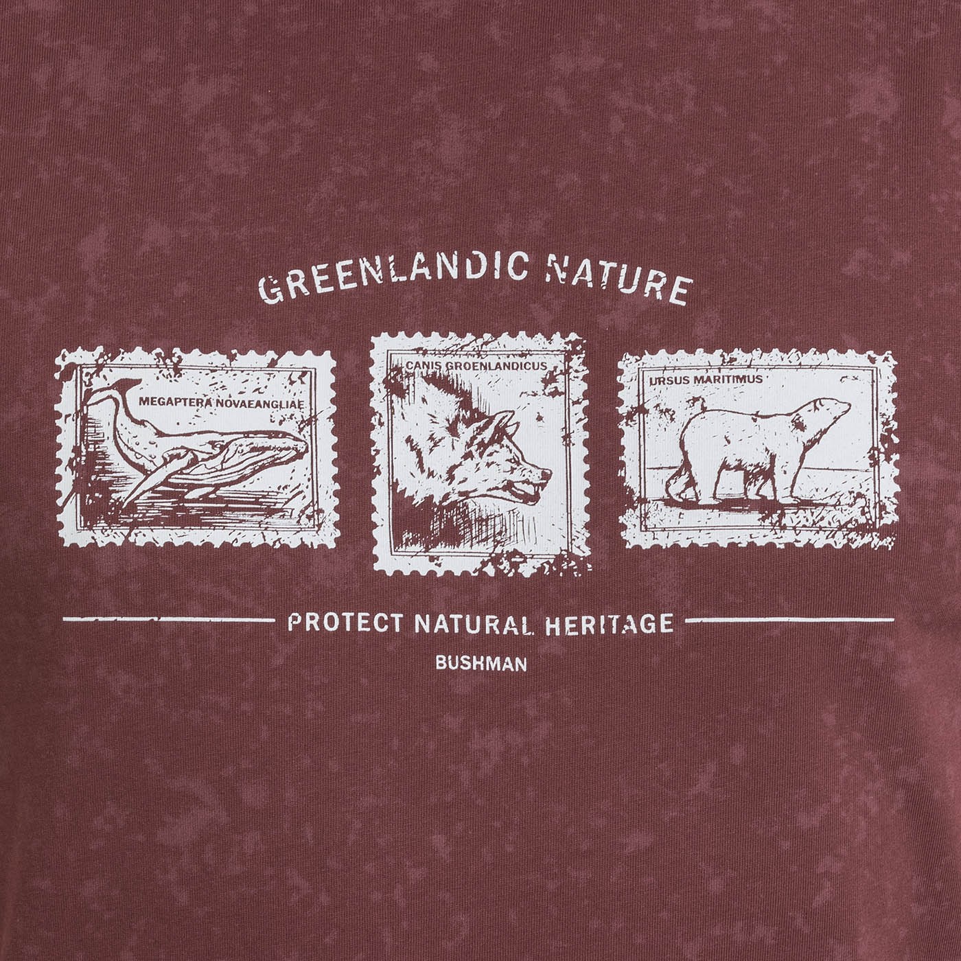 Die Natur ist der größte Künstler. Das DALVIK T-Shirt mit Batik-Effekt und einem von der grönländischen Wildnis inspirierten Print bringt die raue Schönheit des Nordens direkt in den Großstadtdschungel. Drei Tiermotive, der Aufdruck „Greenlandic nature“ und ein guter Anteil an echter Baumwolle erinnern dich an das Wesentliche. Klassischer Schnitt, hochwertiger Single Jersey, der lange hält - ein Kleidungsstück, das dich selbst im Büro an das Reisen erinnert.
