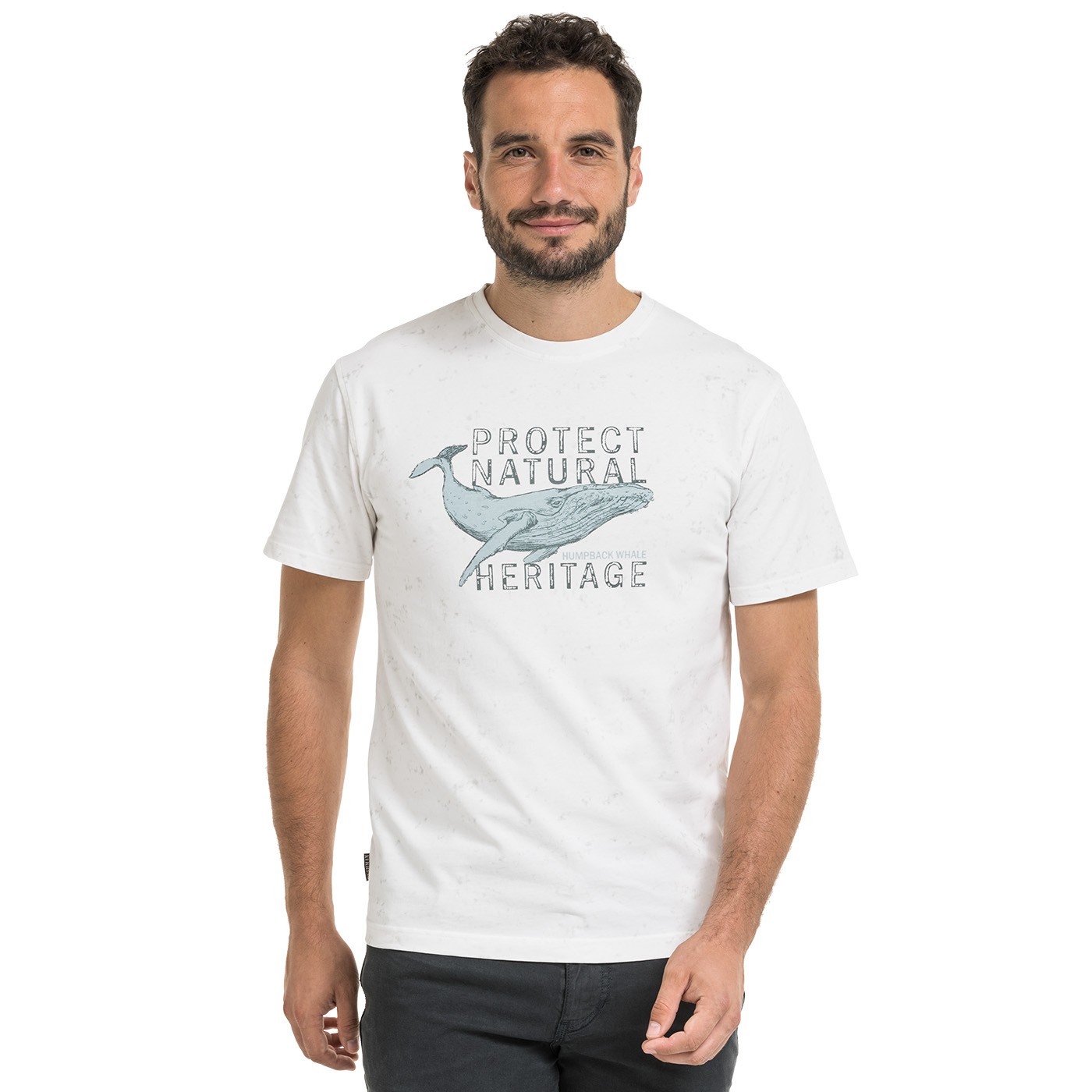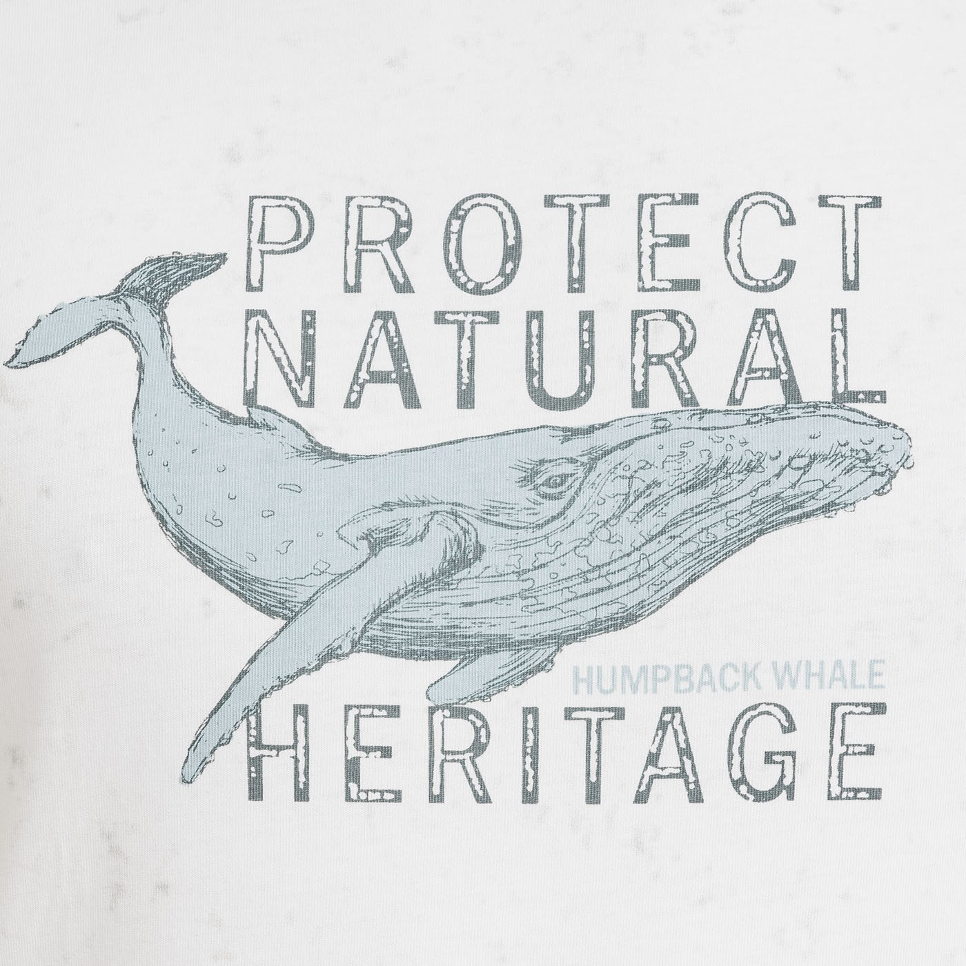 Wenn sich das Meer kräuselt und ein Koloss mit stiller Würde unter der Oberfläche vorbeizieht, bleibt man staunend zurück. Dieses T-Shirt mit dem Aufdruck eines Buckelwals und dem Schriftzug „Protect Natural Heritage“ trägt denselben Respekt vor der Natur in sich. Ein Tiermotiv, das nicht auf Mode setzt, sondern auf Haltung. Klassischer Schnitt, hochwertige Baumwolle (Single Jersey), geradliniger Stil.