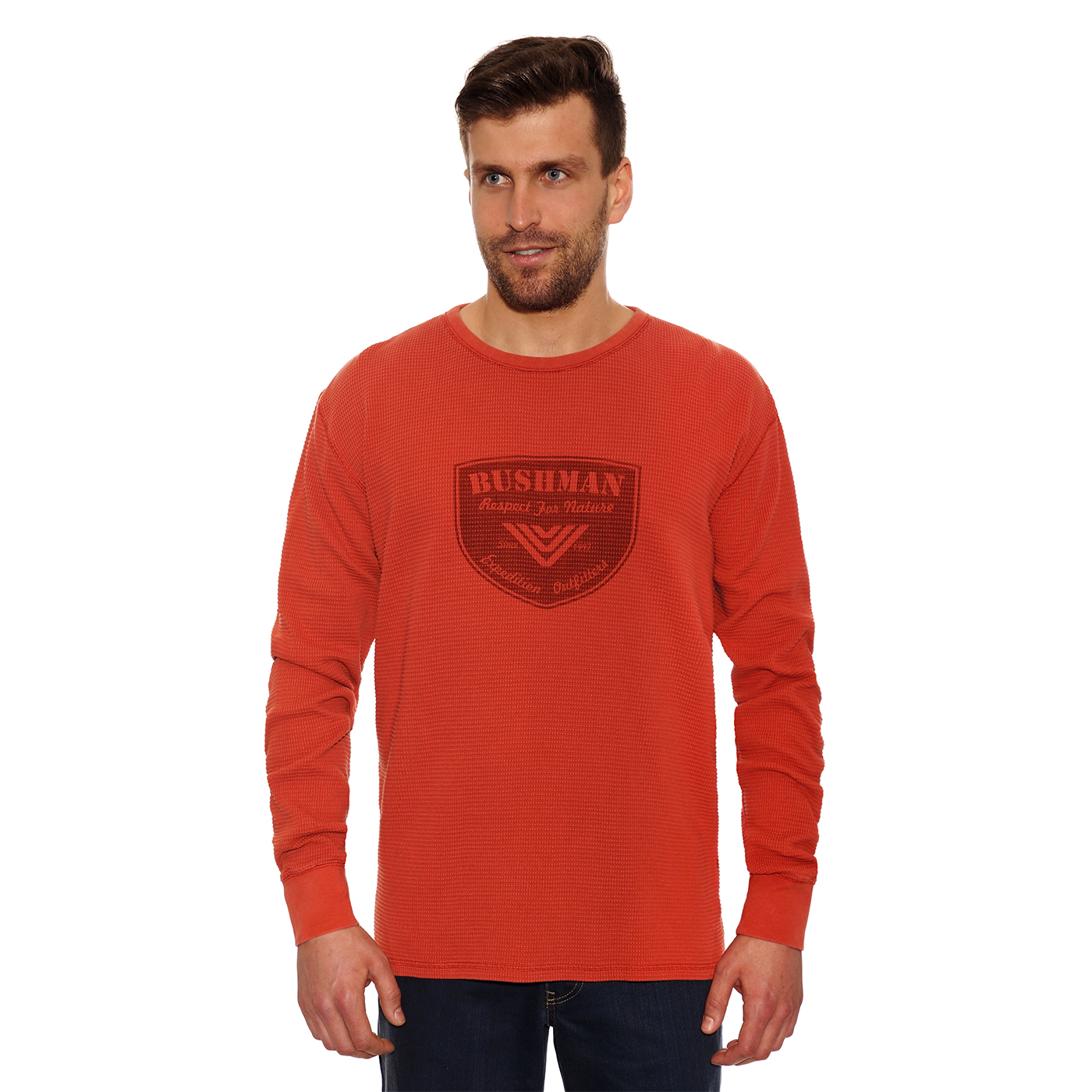 Das T-Shirt BUSHMAN GOLDWINNER hält Sie warm auch dank des Waffelbindung Materials. Aus Sicht des Designs ist der obere Zierstich sehr interessant.