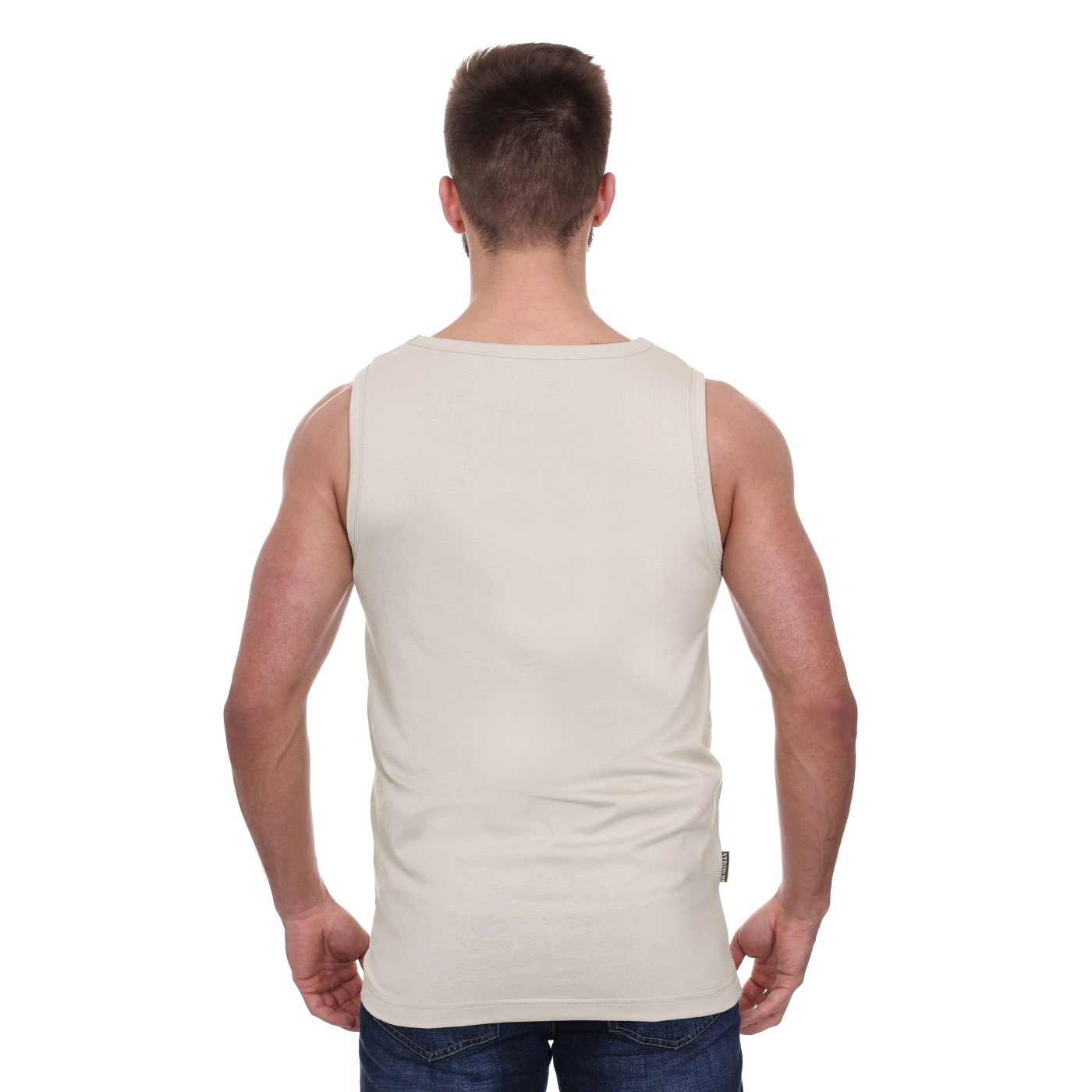 Das einfache ärmellose T-Shirt in erdiger Farbe besteht aus Single-Jersey. Dank diesem ist das Material sehr leicht, und umso mehr werden Sie es in den heißen Sommertagen schätzen – egal, ob Sie in die Sonne losfahren, oder den Komfort im Schatten genießen.