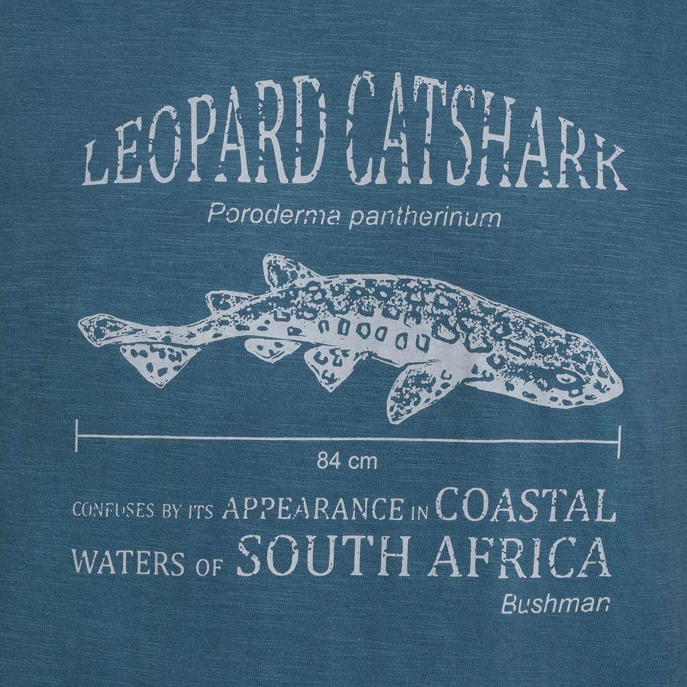 Das Kurzarm T-Shirt KAY besteht aus 100 % Baumwolle (Strickgewebe mit natürlicher unregelmäßiger Struktur – Slub-Jersey). Der gerade Schnitt schmeichelt jeder Figur. Der Tierprint auf der Vorderseite und der Markenprint auf der Rückseite unterstreichen den Charakter des BUSHMAN-Slogans.
