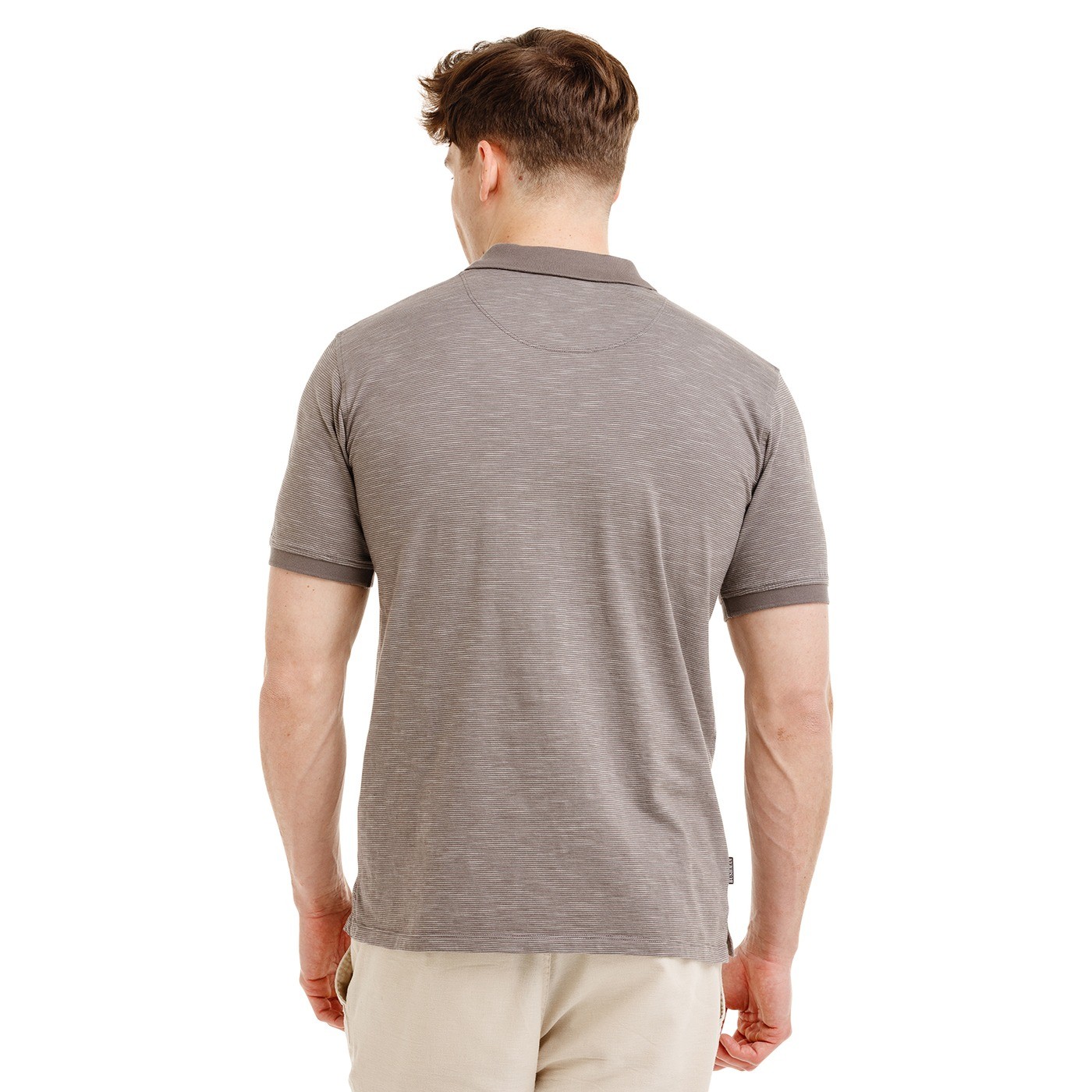 Unser Poloshirt KEITH II besteht aus 100 % Baumwolle (Strickgewebe mit natürlicher unregelmäßiger Struktur – Slub-Jersey – und feinem Streifenmuster). Es hat kurze Ärmel, einen klassischen Polokragen und einen Knopfverschluss mit Kokosnussknöpfen. Ein besonderes Detail sind die farblich abgestimmten Säume an Ärmeln und Kragen. Praktisch ist die Ton-in-Ton-Spitze, die für einen besseren Halt des Kragens sorgt. Auf der Brust befindet sich außerdem eine dezente Markenstickerei.