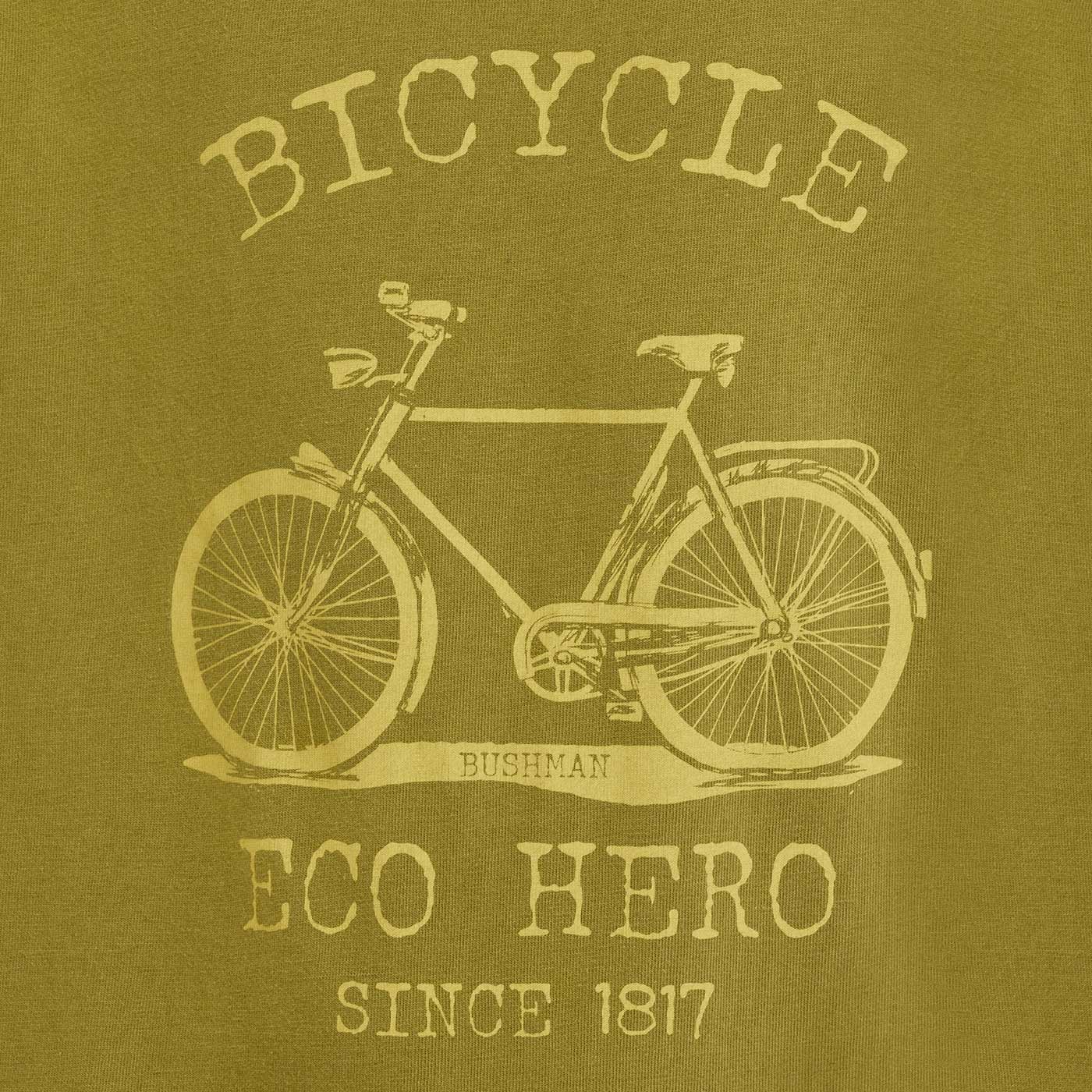 In dieser Variante ziert das Shirt LABA ein markanter Fahrradprint mit dem Slogan „Bicycle eco hero since 1817“, der dem T-Shirt einen sportlichen und abenteuerlustigen Charakter verleiht. Das schlichte Design ohne Rückenprint lässt das Hauptmotiv auf der Vorderseite besonders gut zur Geltung kommen.