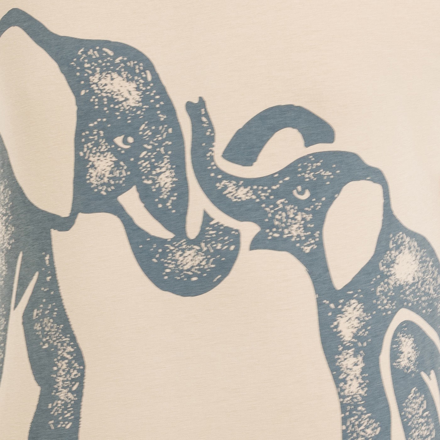 Diese Variante von LABA besticht durch einen verspielten Elefantenprint auf der Vorderseite, dessen Silhouette sich fließend auf der Rückseite fortsetzt. Das fröhliche Motiv verleiht diesem T-Shirt Originalität und kindliche Verspieltheit und macht es so zu einem Lieblingsstück für jeden Tag.