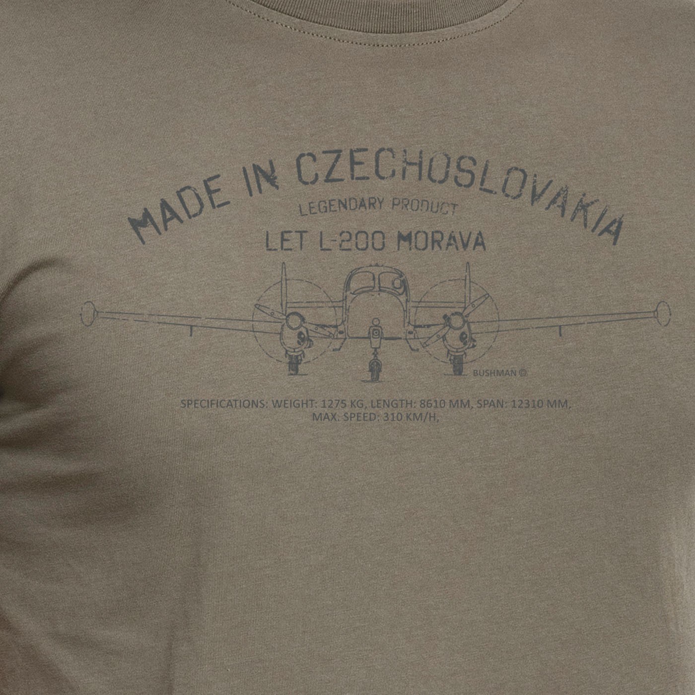 Wir schätzen Dinge, die die Welt oder die Herzen vergangener Generationen erobert haben. Er sollte das neue Aerotaxi werden, und seine Entwicklung begann 1955 im späteren Werk Let Kunovice. Die zweimotorige freitragende Tiefdecker-Maschine Let L-200 Morava für einen Piloten und drei bis vier Passagiere wird wegen ihrer Beliebtheit und Qualität bis heute vor allem für Rundflüge eingesetzt. Mit einer speziellen Edition von Drucken auf diesen Baumwoll-T-Shirts mit kurzen Ärmeln zollt BUSHMAN den legendären Produkten „made in Czechoslovakia“ Tribut. 100 % Baumwolle, Stoffgewicht 180 g/m², gerader Schnitt.