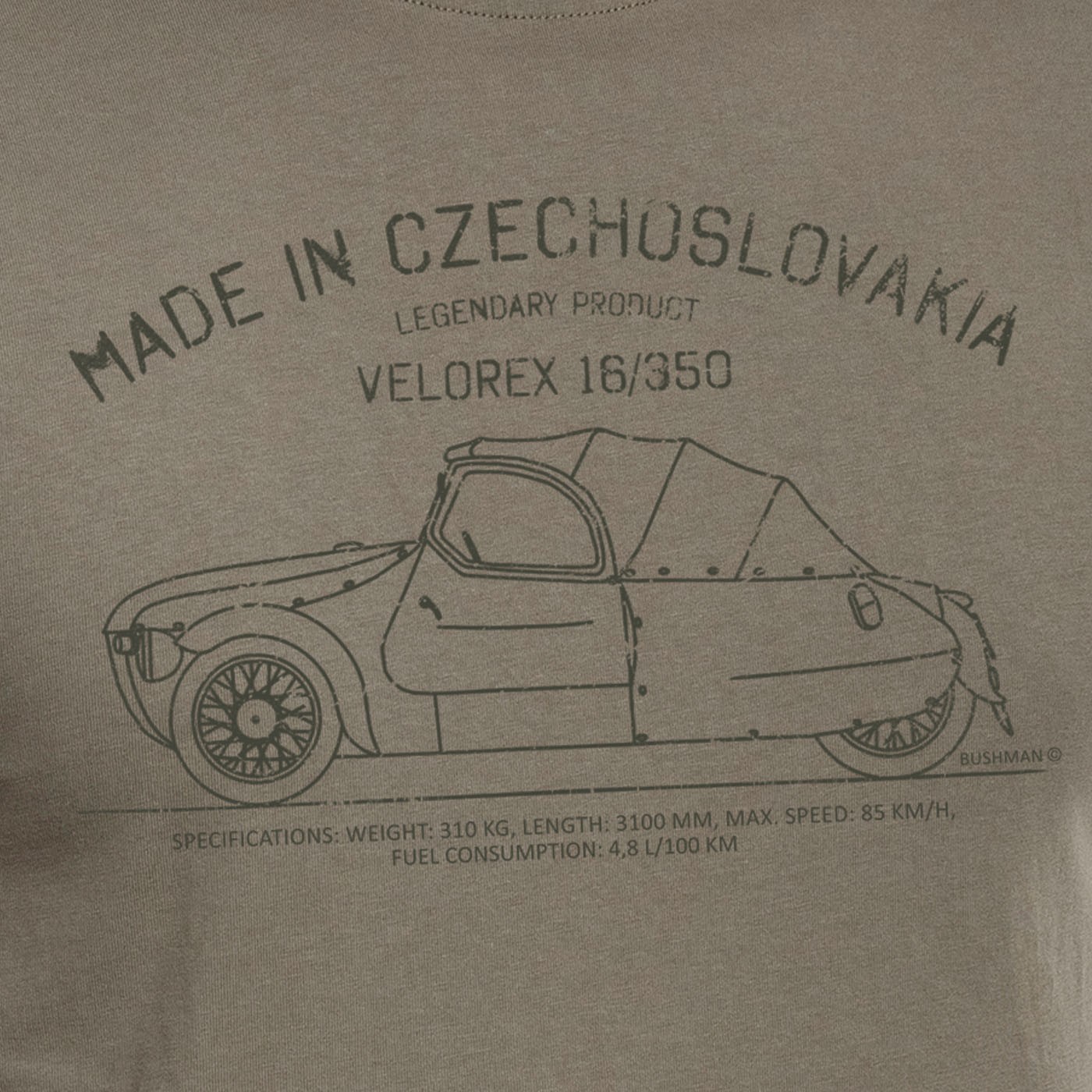 Wir schätzen Dinge, die die Welt oder die Herzen vergangener Generationen erobert haben. Der Velorex, liebevoll „Hadrák“, „Hadraplán“, „Gänsekeule“, „Montgomerák“, „Fledermaus“, „verrĂĽckte Rohre“ oder „fliehendes Zelt“ genannt, wurde zum einzigen weltweit zugelassenen Fahrzeug mit Stoffkarosserie. Der ursprĂĽnglich in Kleinserie produzierte Rohrrahmen, ĂĽberzogen mit Kunstleder, war eine Konstruktion der BrĂĽder František und MojmĂr StránskĂ˝. Gefertigt wurde er in der Genossenschaft VelodruĹľstvo Solnice als Fahrzeug fĂĽr Menschen mit Behinderung und wurde später durch den Film VrchnĂ, prchni! berĂĽhmt. Mit einer speziellen Edition von Drucken auf diesen Baumwoll-T-Shirts mit kurzen Ă„rmeln zollt BUSHMAN den legendären Produkten „made in Czechoslovakia“ Tribut. 100 % Baumwolle, Stoffgewicht 180 g/m², gerader Schnitt.
