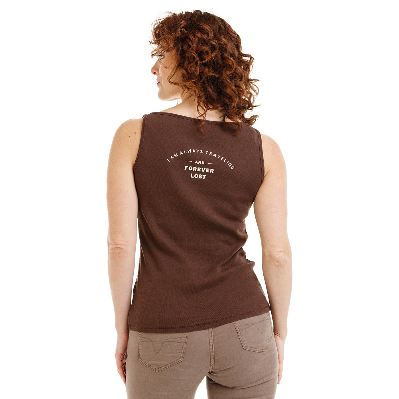 BELI ist ein schlichtes, aber markantes Unterhemd für sommerliche Outfits. Das gerippte Material verleiht dem Shirt Struktur und sorgt gleichzeitig für eine angenehme, körpernahe Passform. Dank seiner Elastizität lässt es sich sowohl solo als auch als Baselayer bequem tragen. Der minimalistische Look wird durch einen humorvollen Print auf der Rückseite – „I'm always traveling and forever lost“ – aufgelockert, der dem Unterhemd (mit einem Augenzwinkern) den perfekten Reise-Vibe verleiht. BELI passt gleichermaßen gut zu Shorts, Röcken und unter einem Hemd – genau das richtige Kleidungsstück, das man immer wieder gerne trägt.