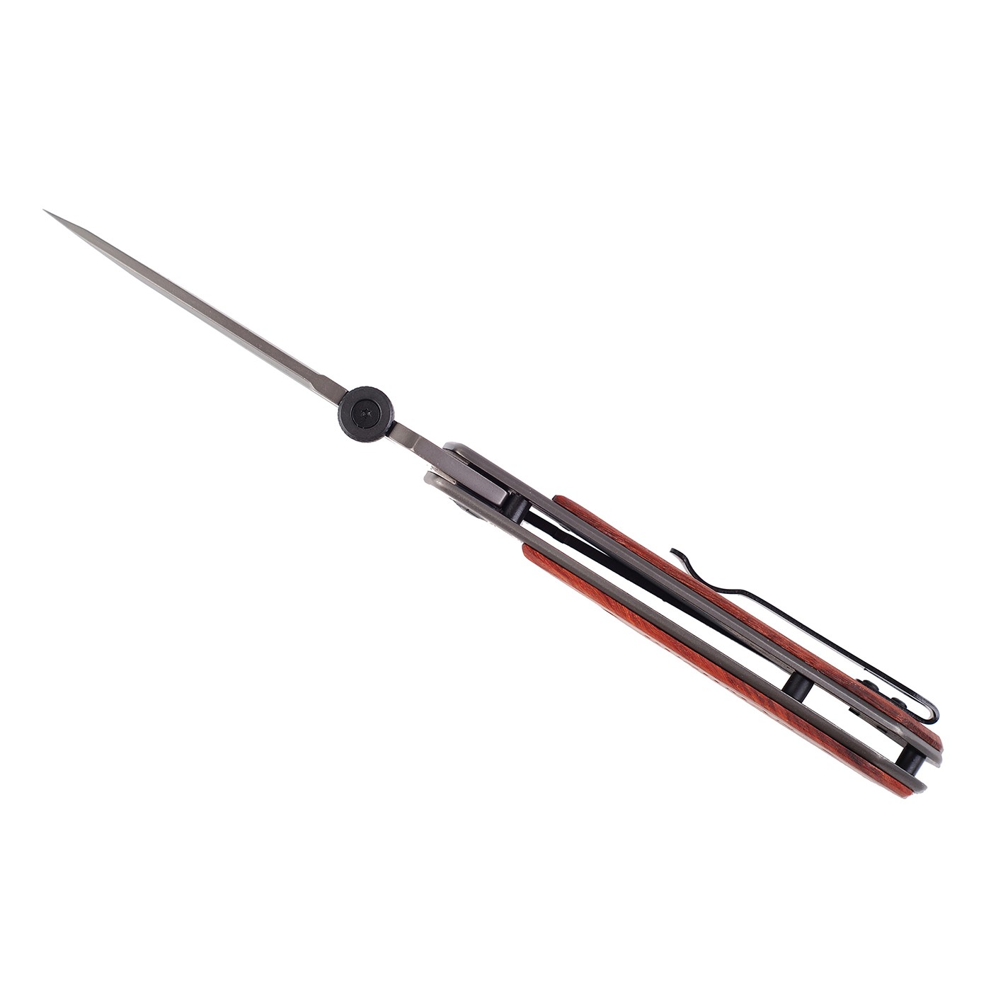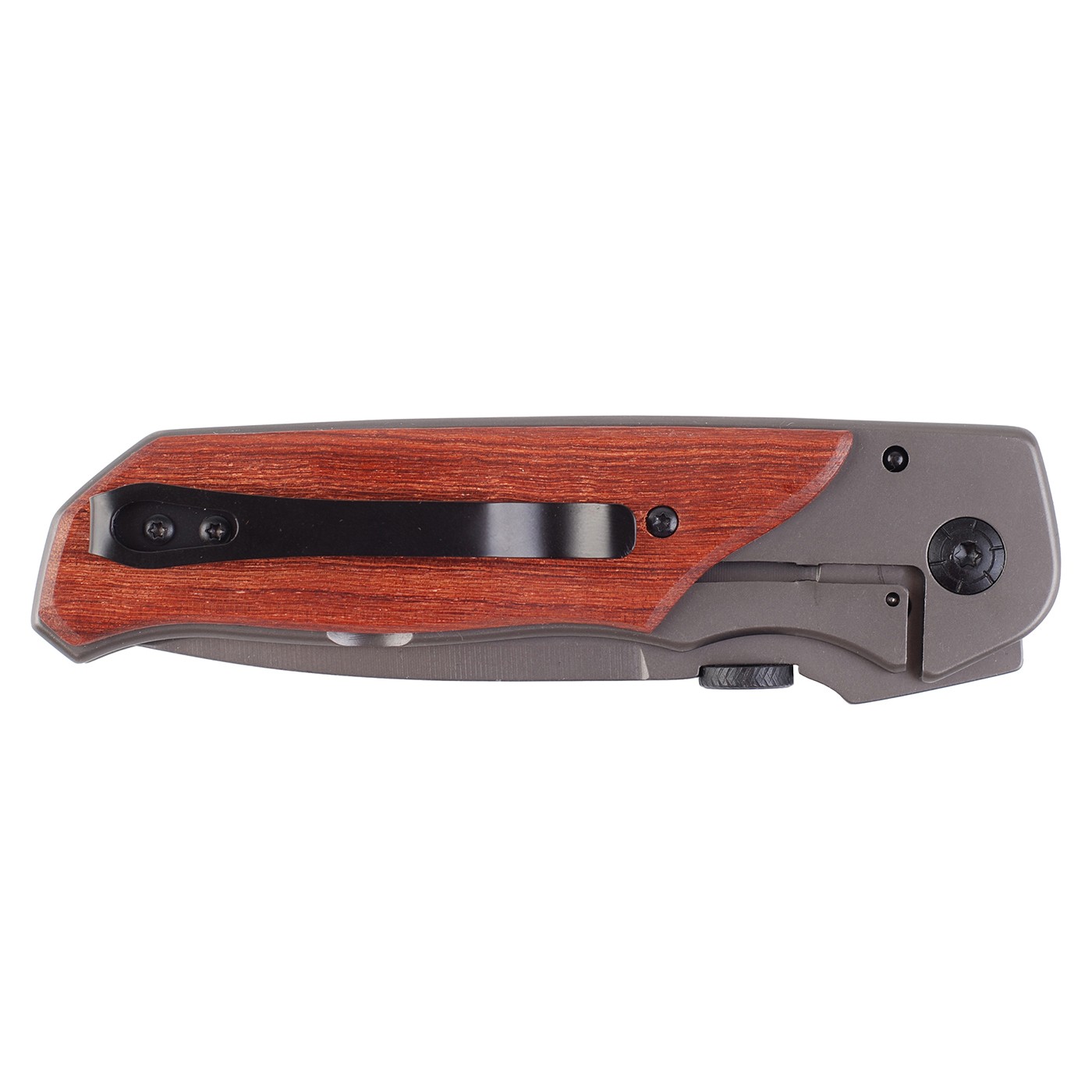 Die Holzart Rosewood, früher auch unter dem Begriff Palisander bekannt, aus dem der Messergriff hergestellt wird, ist ein hartes, schweres Holz in der braunen bis rotbraunen Farbe von tropischen Bäumen der Gattung der Dalbergien, vor allem aus den Arten Dalbergia latifolia, Dalbergia nigra, Dalbergia stevensonii. Palisander oder engl. „Rosewood“ wird hauptsächlich zur Herstellung von Intarsien bei Möbeln und in der Schnitzkunst benutzt, denn es lässt sich gut polieren.