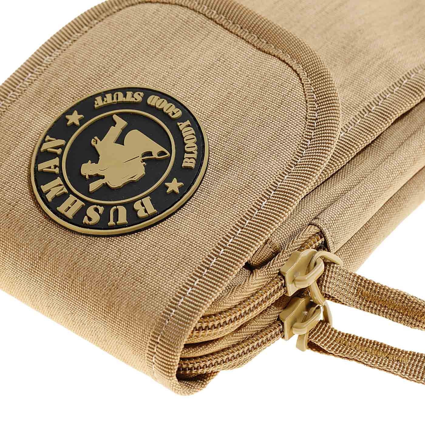 BUSHMAN-Taschen bieten immer das gewisse Extra. Wir haben CASO aus extrem strapazierfähigem Polyester gefertigt. Der dünne, verstellbare Schultergurt lässt sich blitzschnell abnehmen. Unter dem Hauptfach mit Klettverschluss befinden sich drei versteckte Taschen, zwei davon mit Reißverschluss. Auf der Rückseite der Tasche befinden sich zwei robuste Schlaufen, mit denen man die Tasche bequem am Gürtel befestigt und alle wichtigen Dinge griffbereit hat. Unsere Tasche ist mit einem aufwendig gestalteten BUSHMAN-Logo aus Gummi verziert. Maße: 11 x 4,5 x 17 cm.